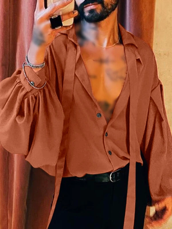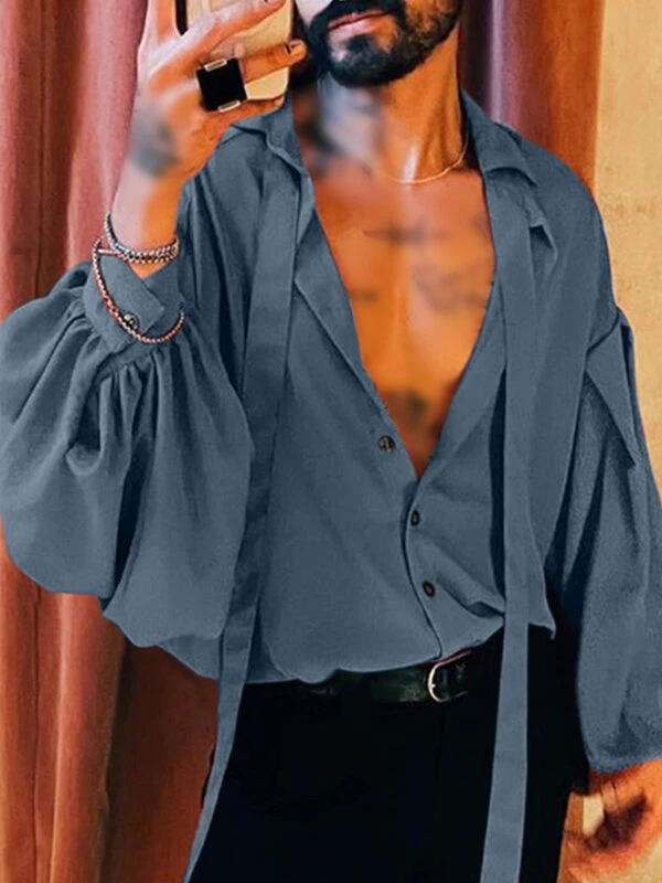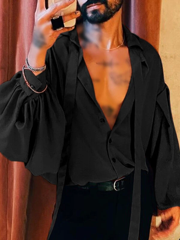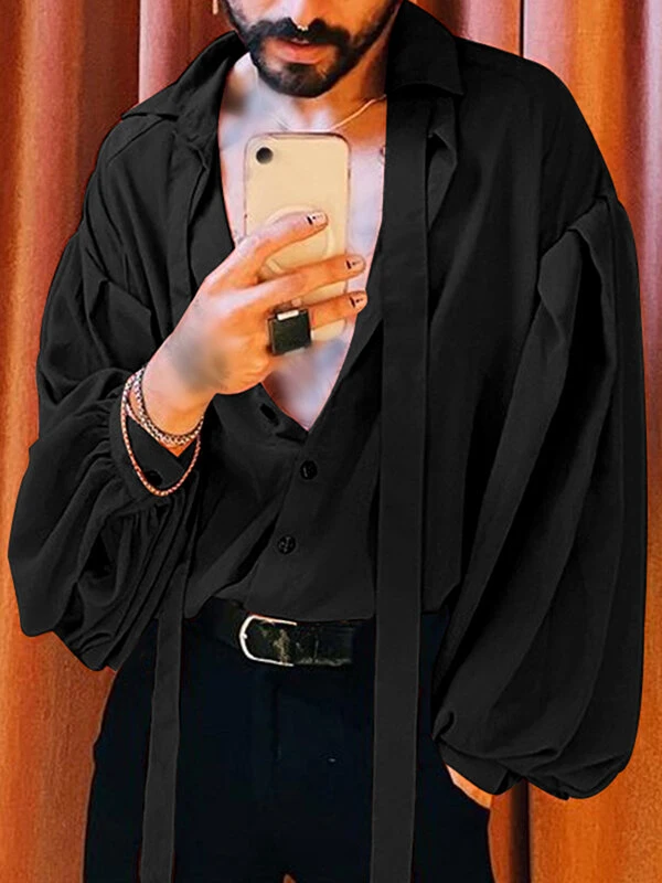 Be the first to review “Men Puff Sleeve Strap Collar Loose Shirt” Cancel reply