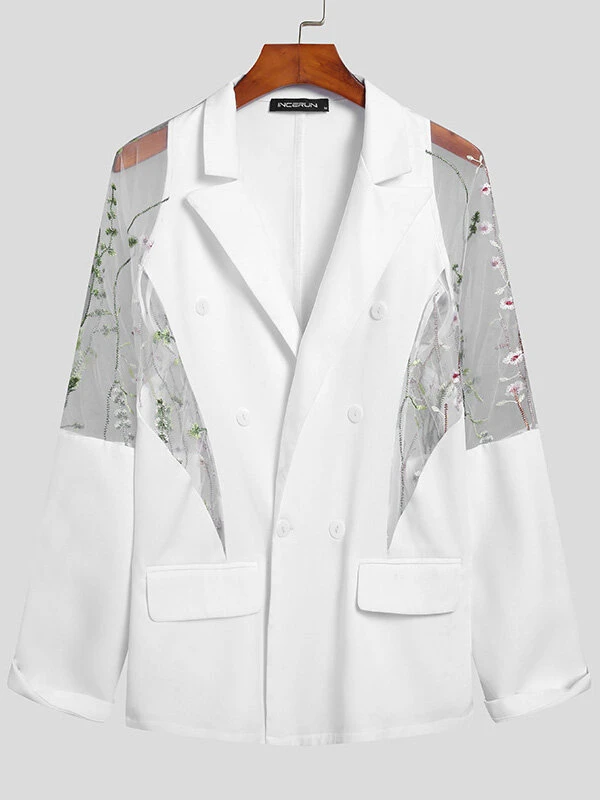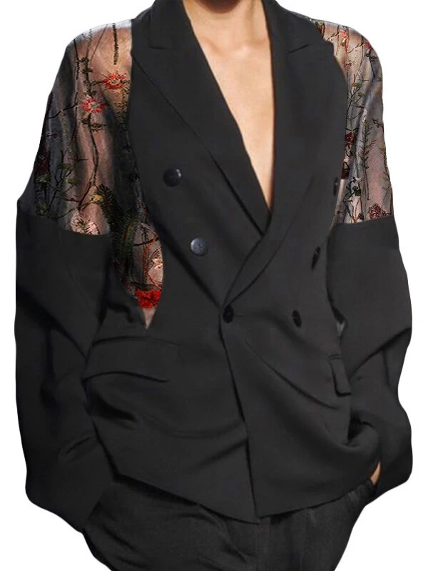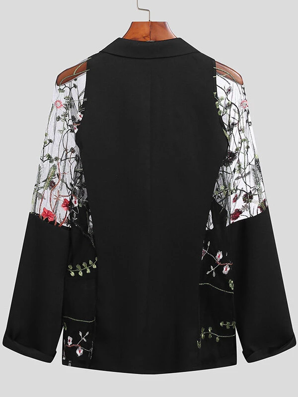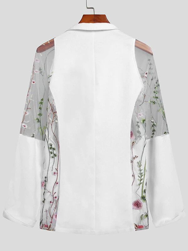 Men’s Mesh Patchwork Floral Long-sleeved Blazer