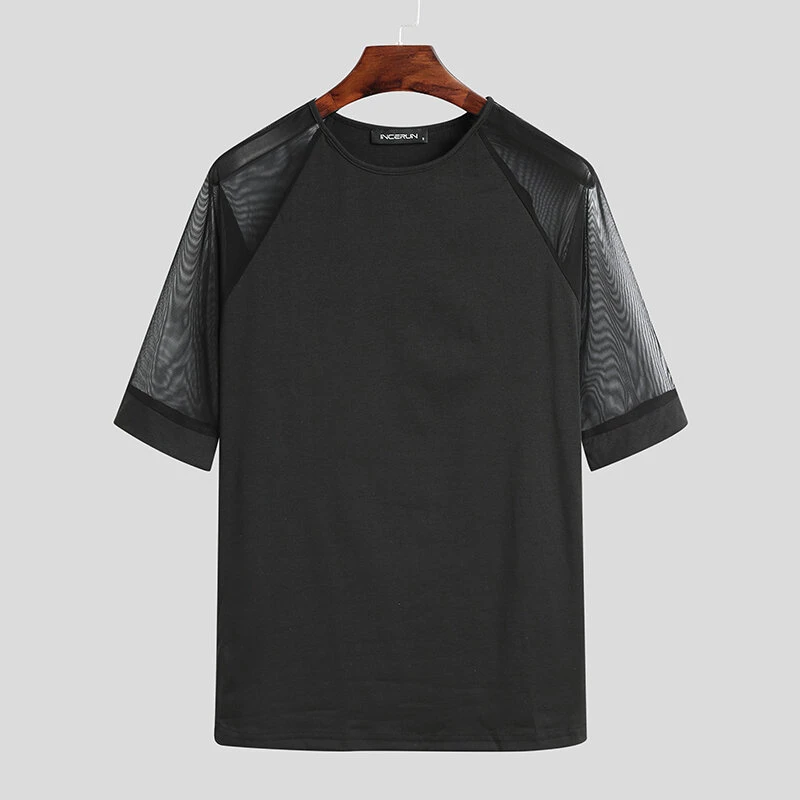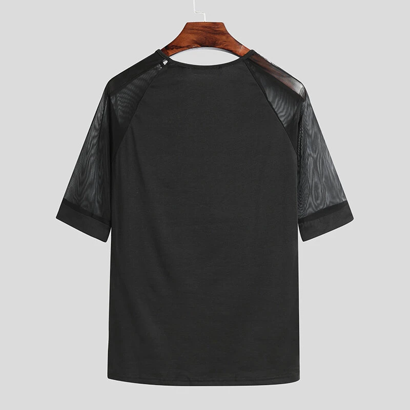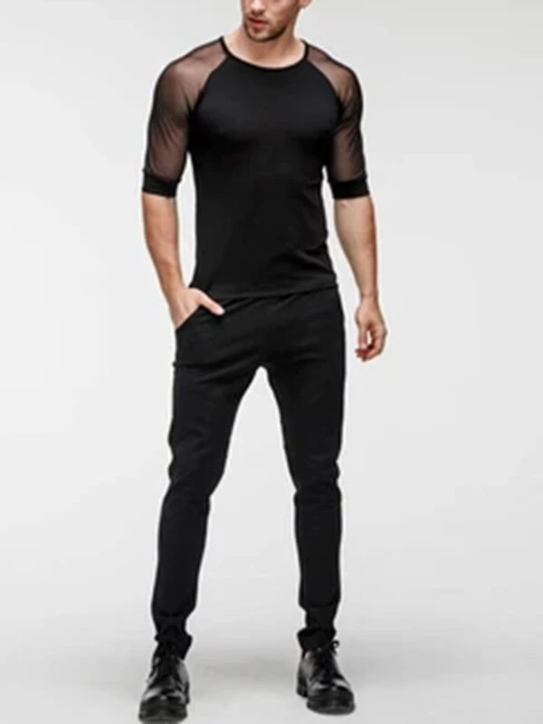 Men See Through Mesh Short Sleeve Slim Fit T-Shirt