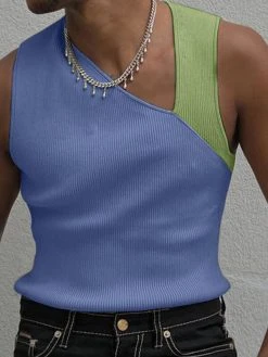 Men Sexy Patchwork Hollow Slim Sleeveless Vest
