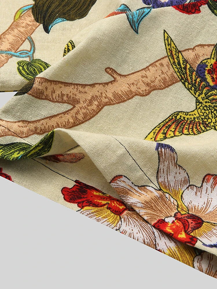 Mens Allover Floral Print Half Button Cotton Henley Shirt