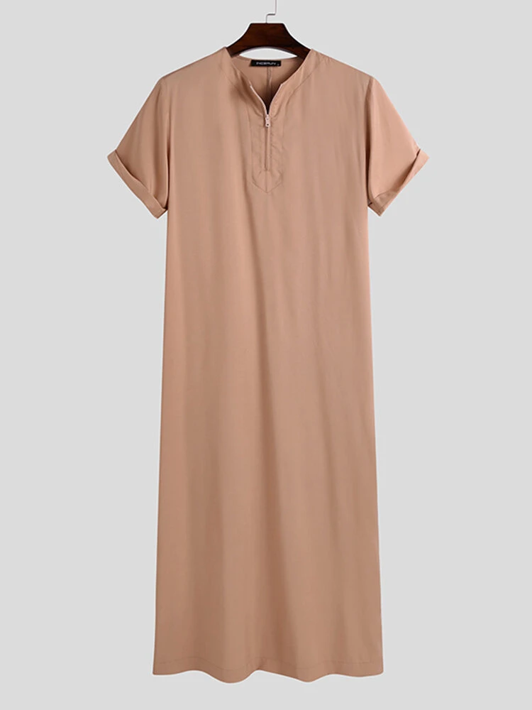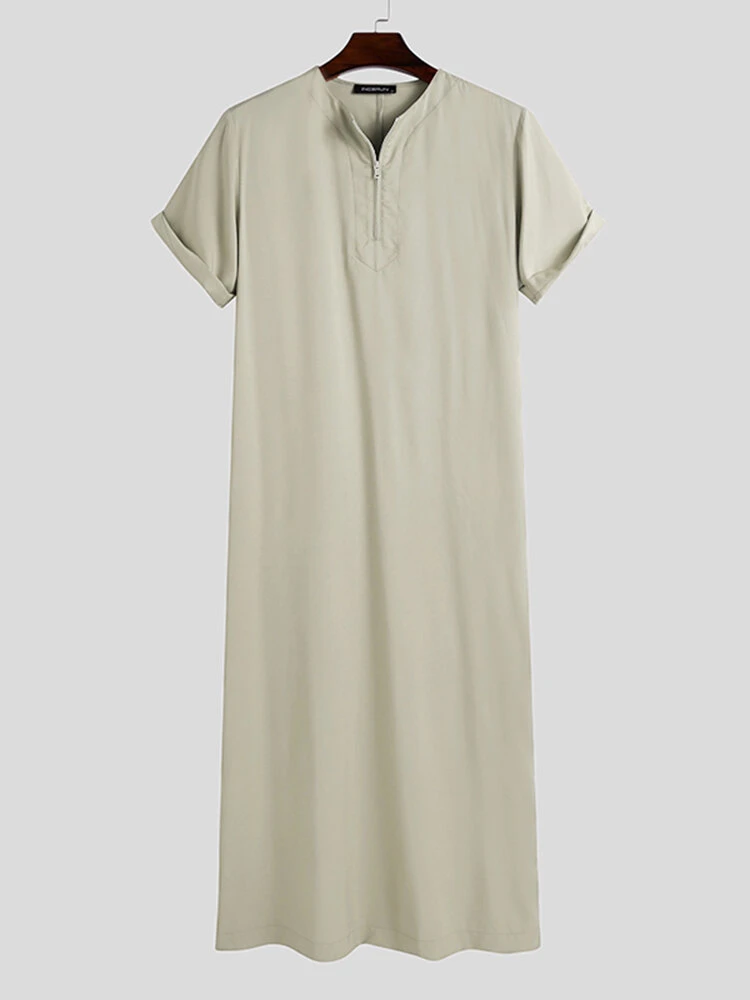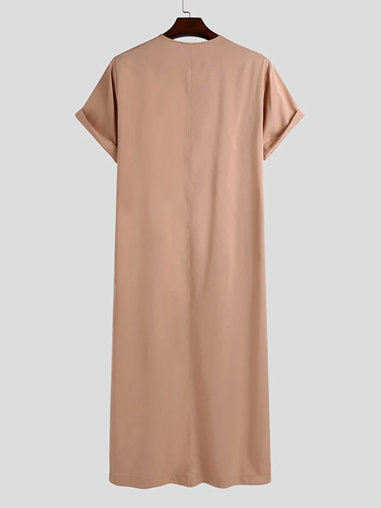 Mens Casual Long Tops Pure Color Short Sleeve Loungewear Robe