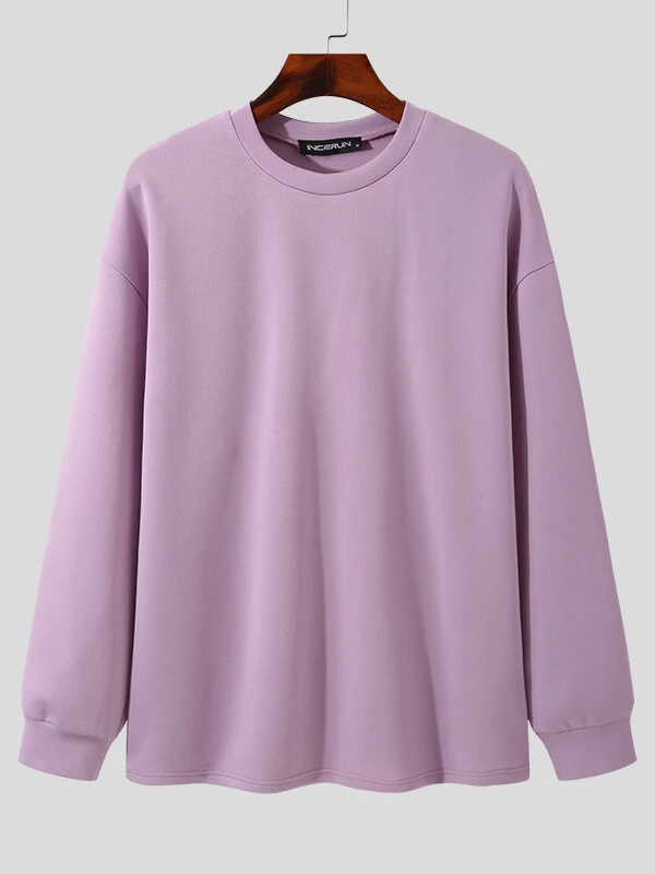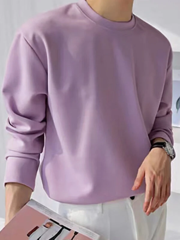 Occasion: Casual Color: Purple, Black Size: S, M, L, XL, 2XL, 3XL, 4XL, 5XL Pattern: Solid Collar: Crew Neck Material: Spandex, Polyester Sleeves Length: Long Sleeve Thickness: Moderate Season: Spring, Autumn Package Included:1*T-shirt