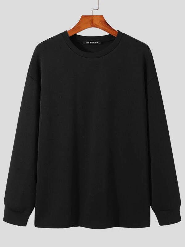 Mens Casual Solid Color Long-sleeved T-Shirts