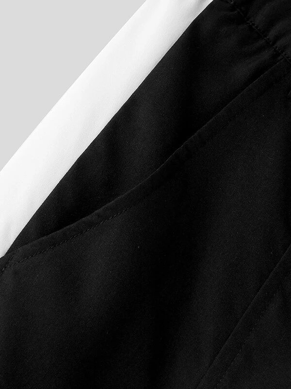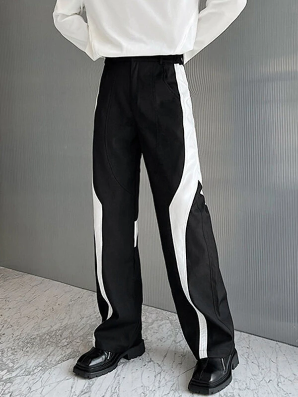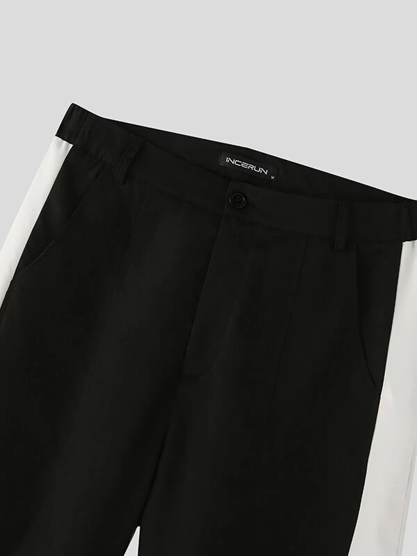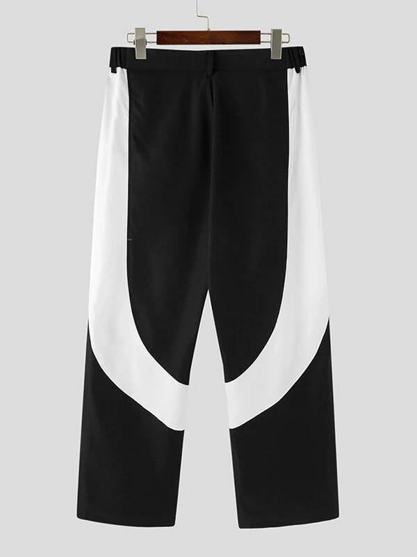 Mens Contrast Patchwork Casual Straight Pants With Pocket