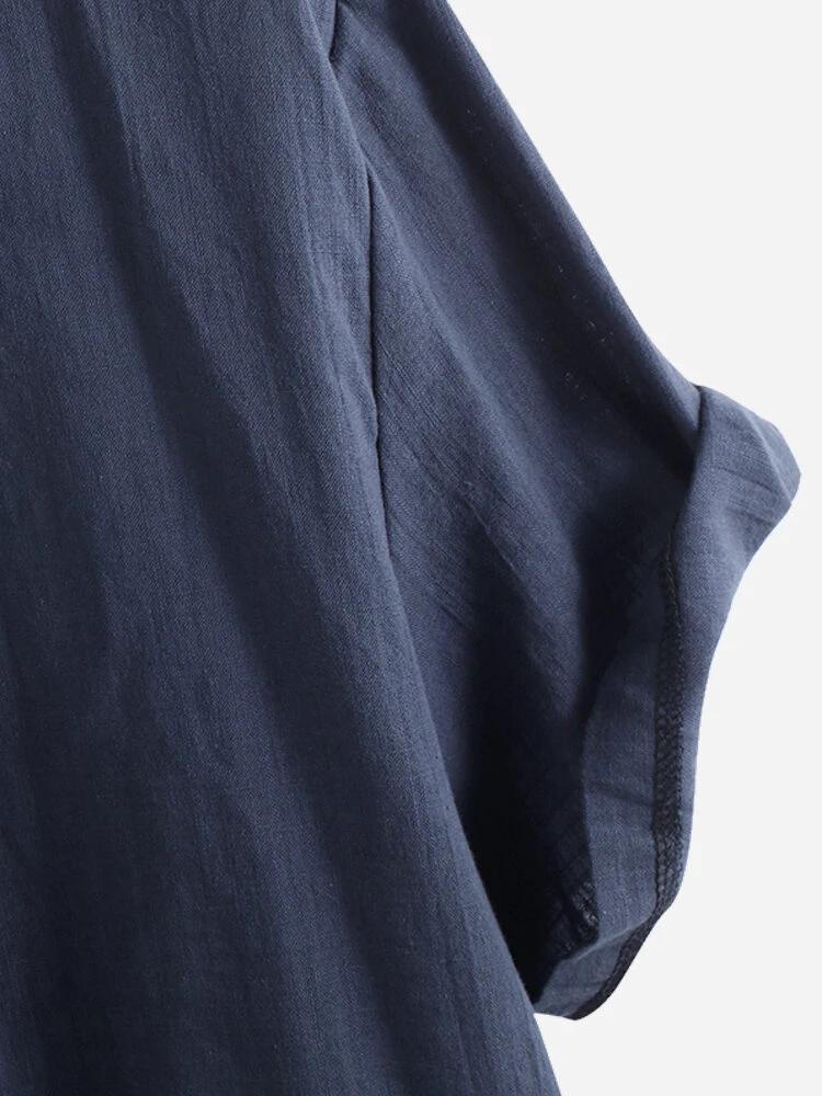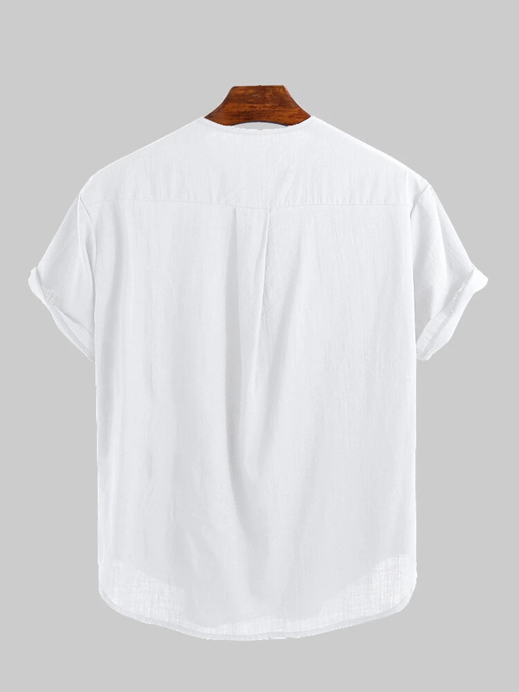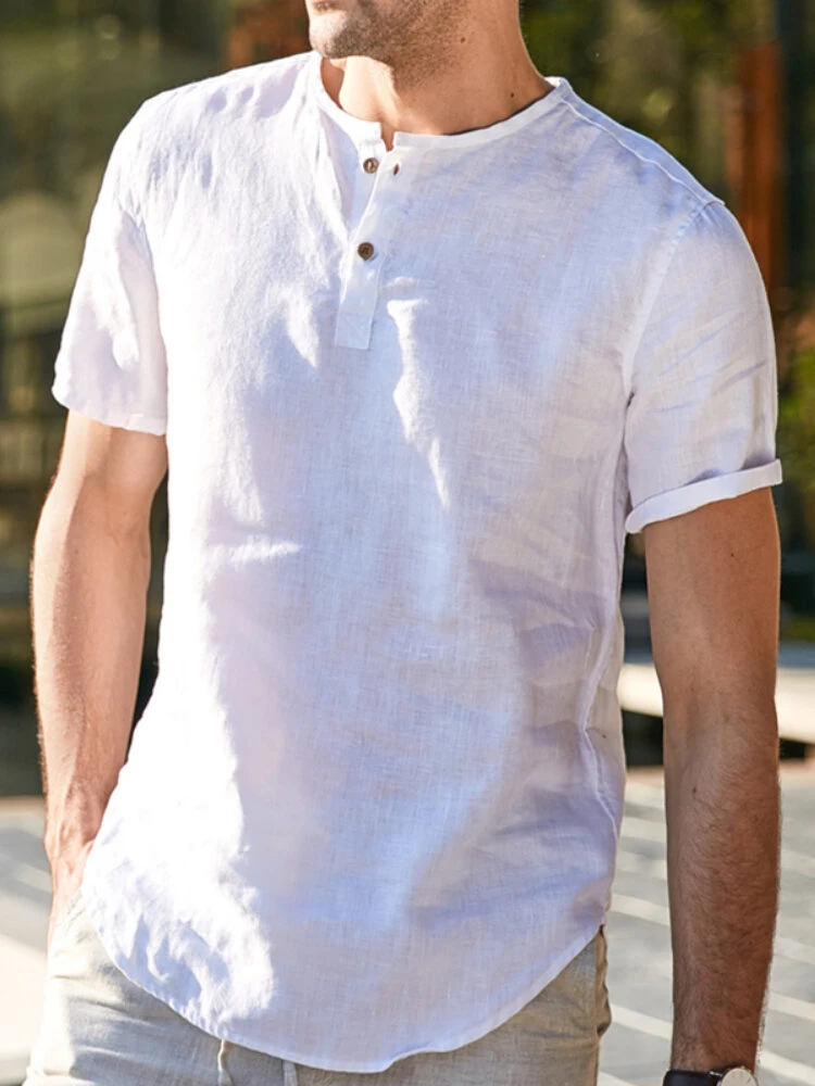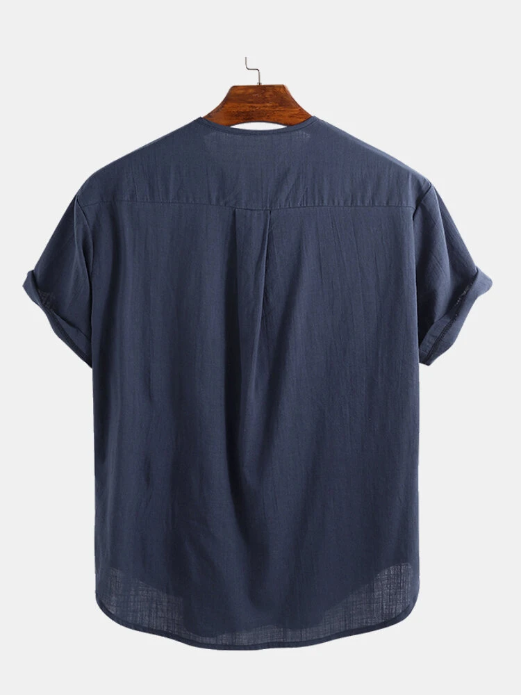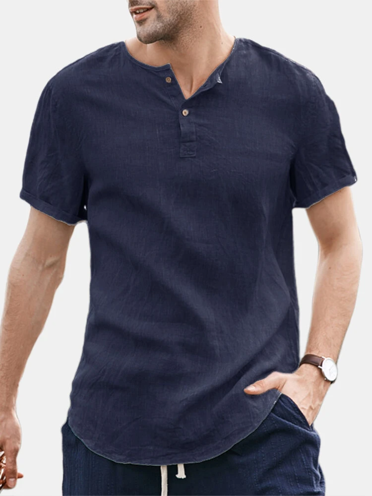 Mens Cotton Linen Thin & Breathable V-Neck Short Sleeve Henley Shirt