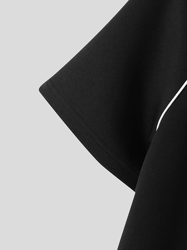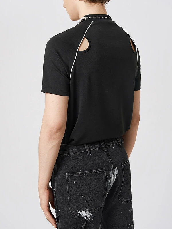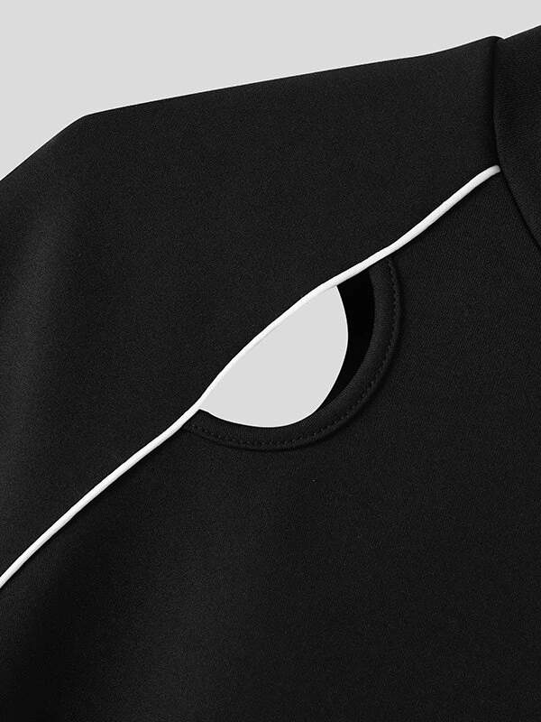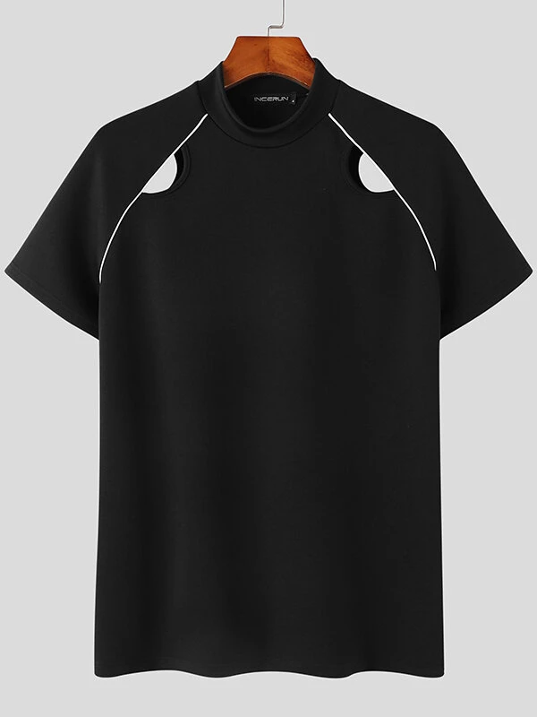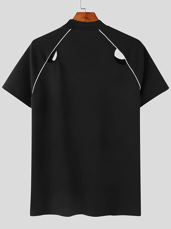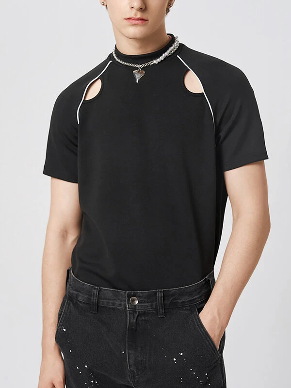 Mens Cutout Half-Collar Piped Raglan Sleeve T-Shirt