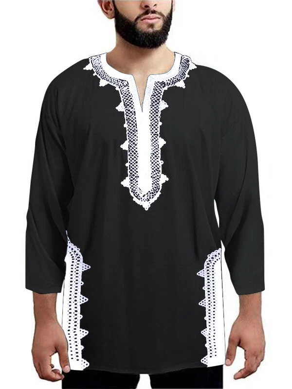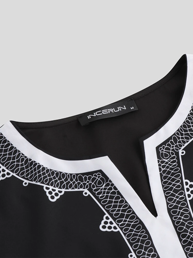 Occasion: Everyday, Casual Color: White, Black Size: M, L, XL, 3XL, 5XL Pattern: Ethnic Pattern Collar: V-neck Material: Polyester Sleeves Length: Half Sleeve Thickness: Moderate Season: Spring Design Element: Print Fit Type: Regular Package included: 1* Shirt Please Note: 1.Please see the Size Reference to find the correct size.