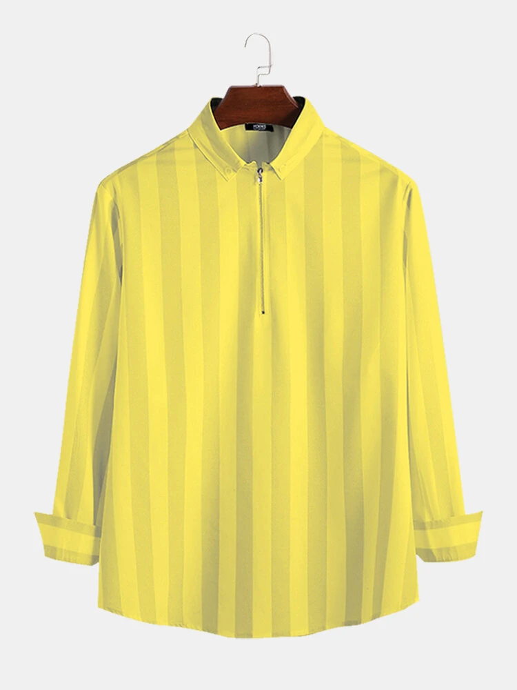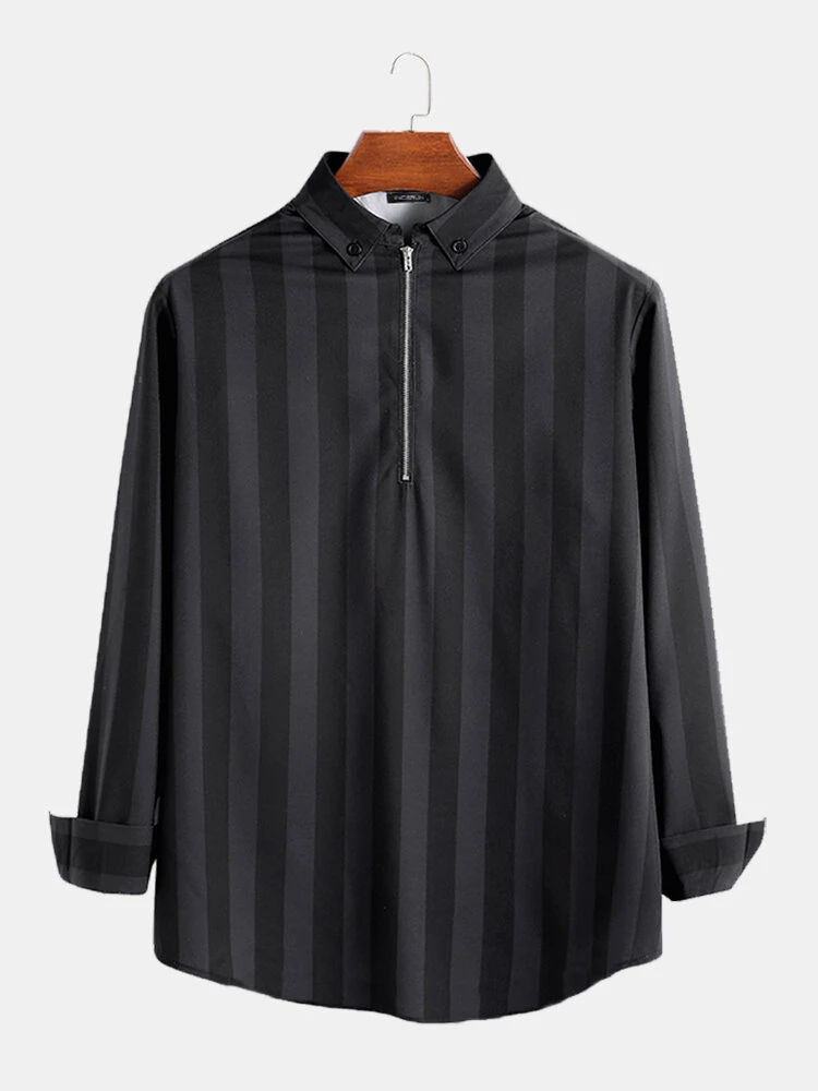Mens Fashion Striped Long Sleeve Loose Fit Half Zipper Casual Shirts