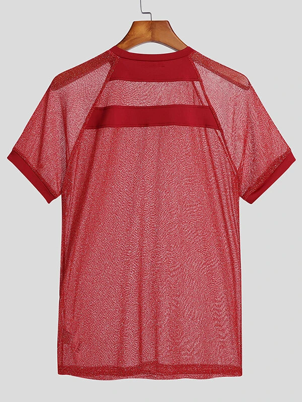 Mens Glitter See Through Raglan Sleeve T-Shirt