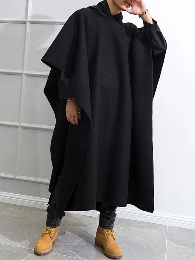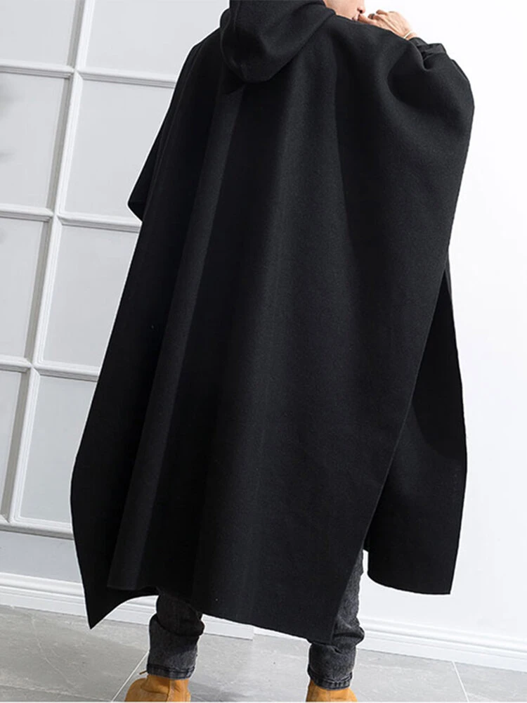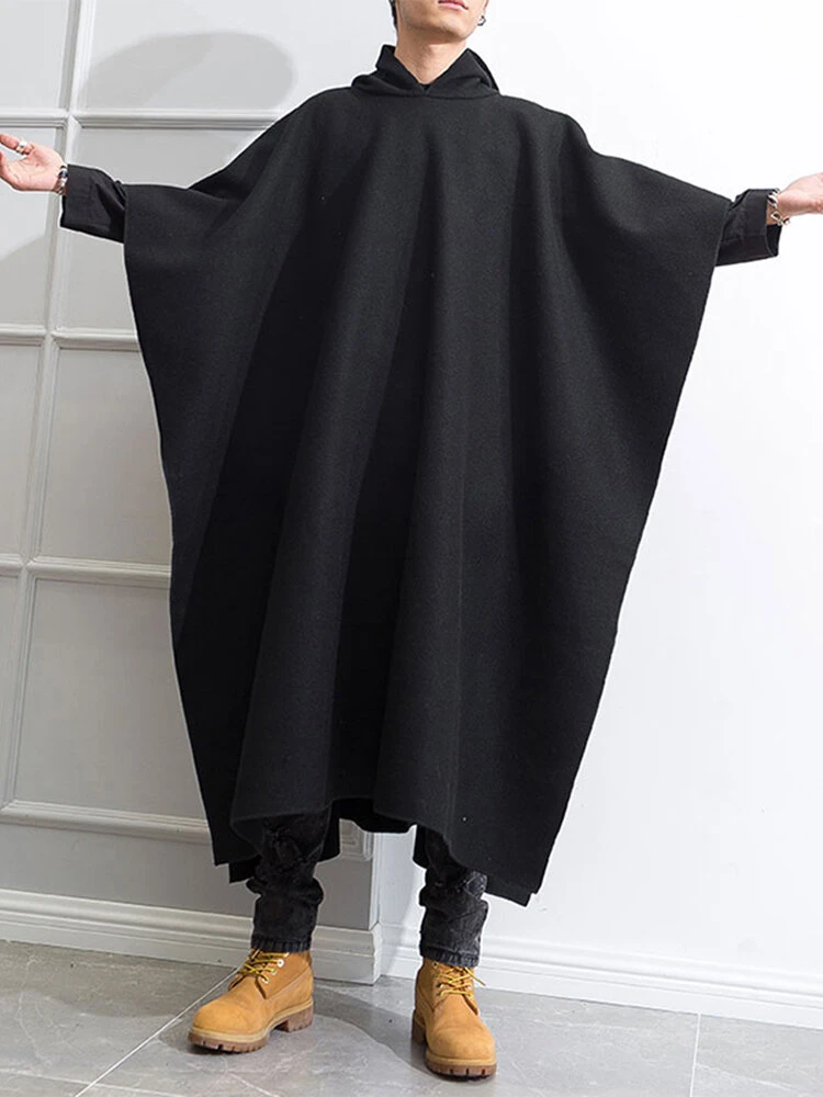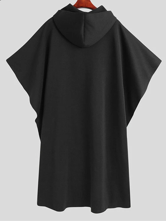 Mens Gothic Baggy Hooded Poncho Long Cloak Overcoat