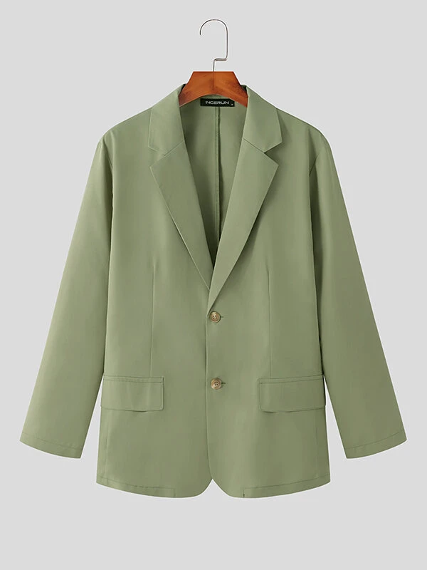 Occasion: Casual Color: Green, Black Size: S, M, L, XL, 2XL, 3XL, 4XL, 5XL Pattern: Solid Collar: Lapel Collar Material: Polyester Sleeves Length: Long Sleeve Thickness: Moderate Season: Spring, Autumn Design Element: Button Package Included:1*Blazer