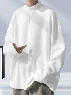 Occasion: Casual Color: Gray, White, Black Size: S, M, L, XL, 2XL, 3XL, 4XL, 5XL Pattern: Solid Collar: Crew Neck Material: Polyester Sleeves Length: Long Sleeve Thickness: Moderate Season: Autumn, Spring Fit Type: Loose Package Included:1*T-shirt