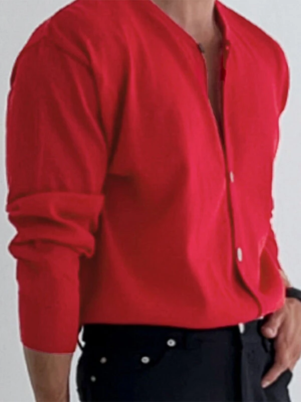 Occasion: Casual Color: Red, Green, Gray, Black Size: S, M, L, XL, 2XL, 3XL, 4XL, 5XL Pattern: Solid Material: Spandex, Polyester Sleeves Length: Long Sleeve Thickness: Moderate Season: Spring, Autumn Design Element: Button Package Included:1*Shirt