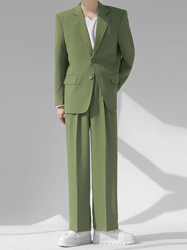 Color: Green, Black, Gray Occasion: Casual Pattern: Solid Collar: Lapel Collar Sleeves Length: Long Sleeve Thickness: Moderate Season: Spring, Autumn Material: Polyester Design Element: Button Package Included:1*Suit