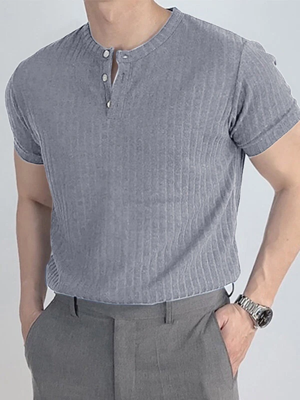 Be the first to review “Mens Knitted Stripe Textured Stretchy Henley T-Shirt” Cancel reply