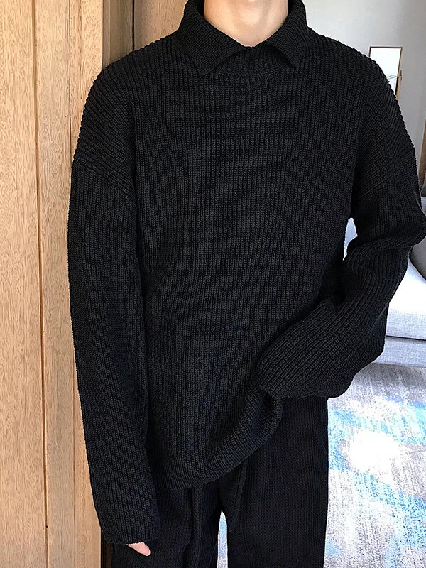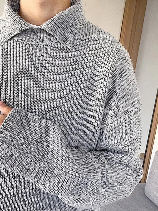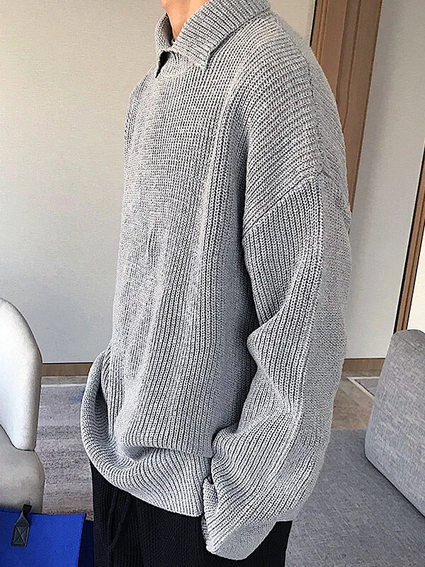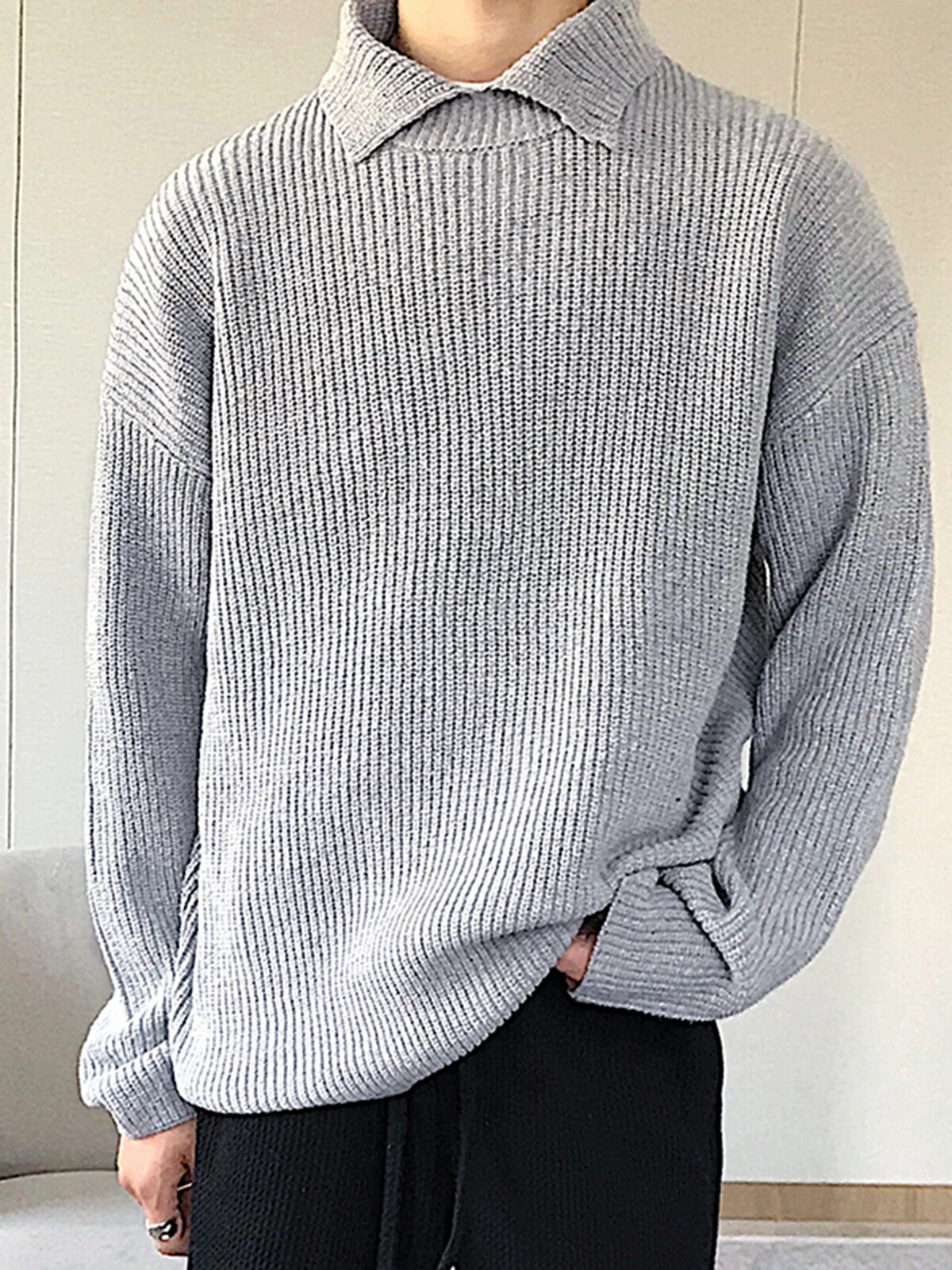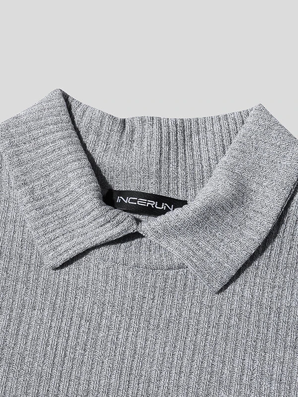 Mens Lapel Solid Color Pullover Knitting Sweater