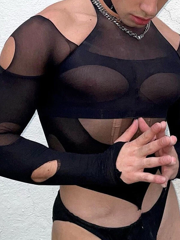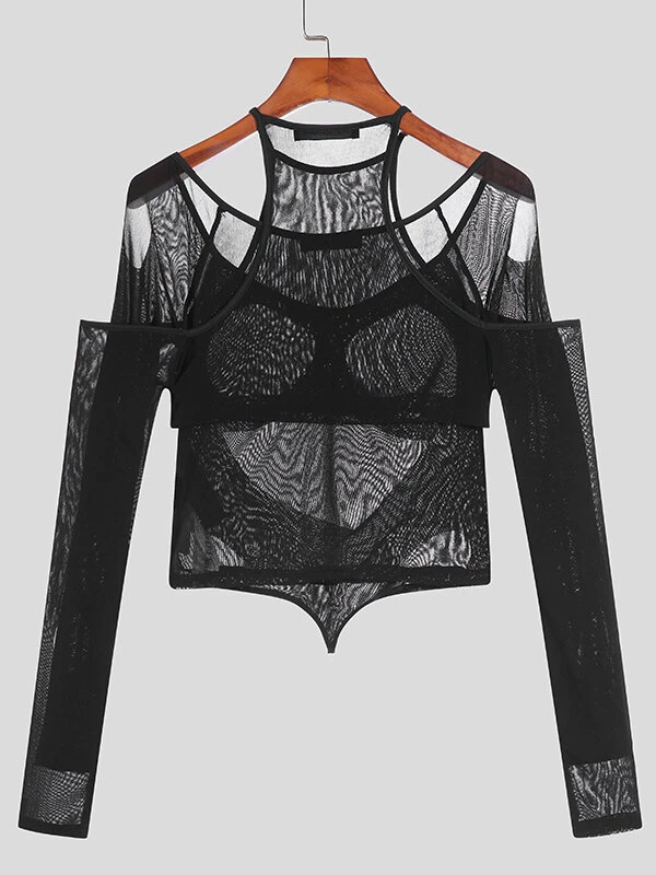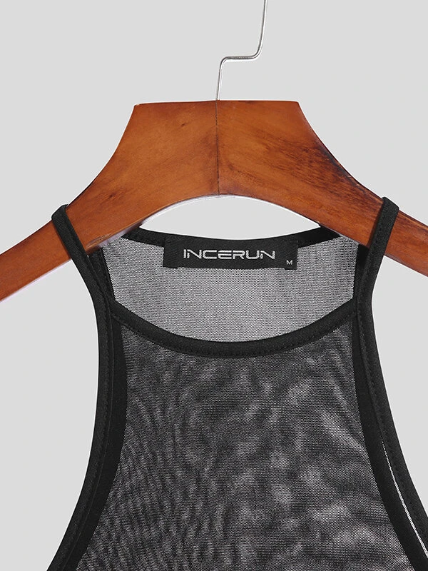 Mens Mesh Hollow Out T-Shirt Vest Set