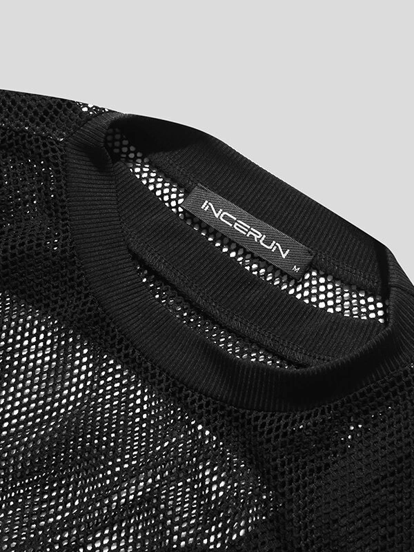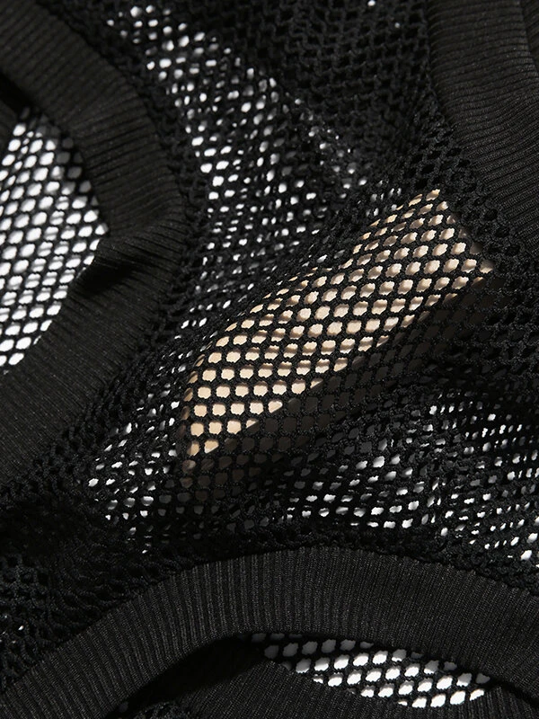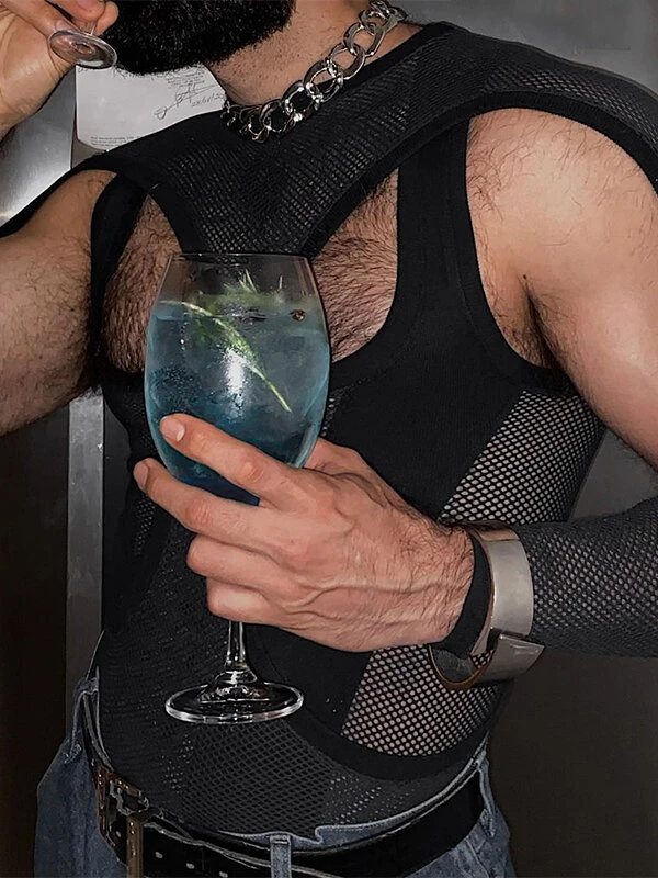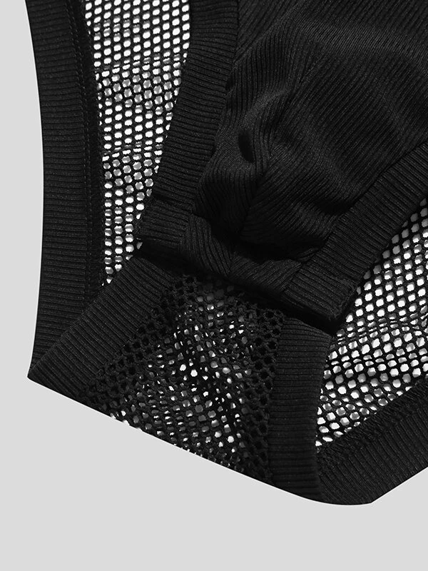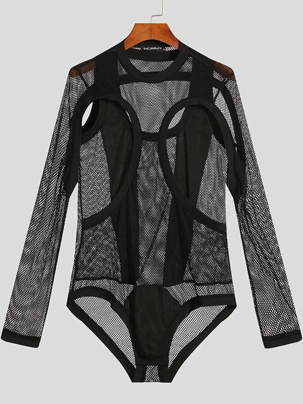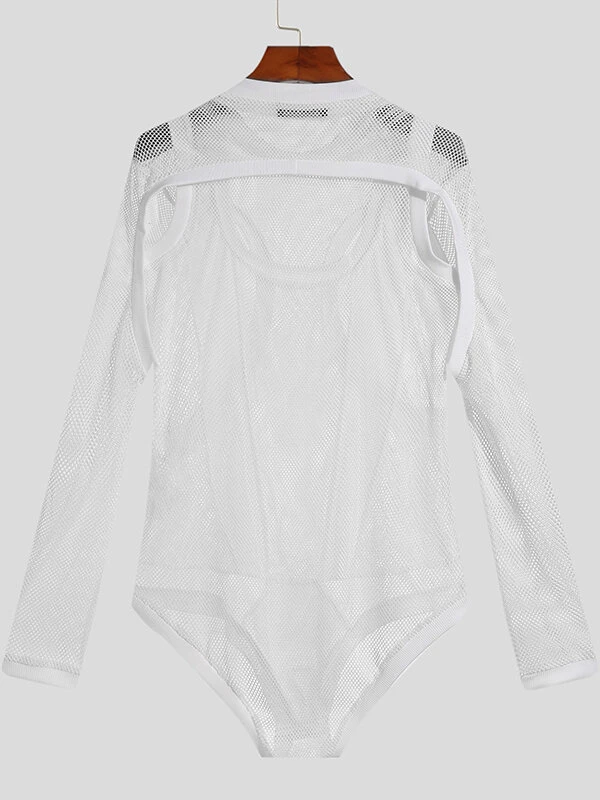 Mens Mesh Hollow Vests Long Sleeve Bodysuit Set