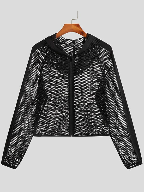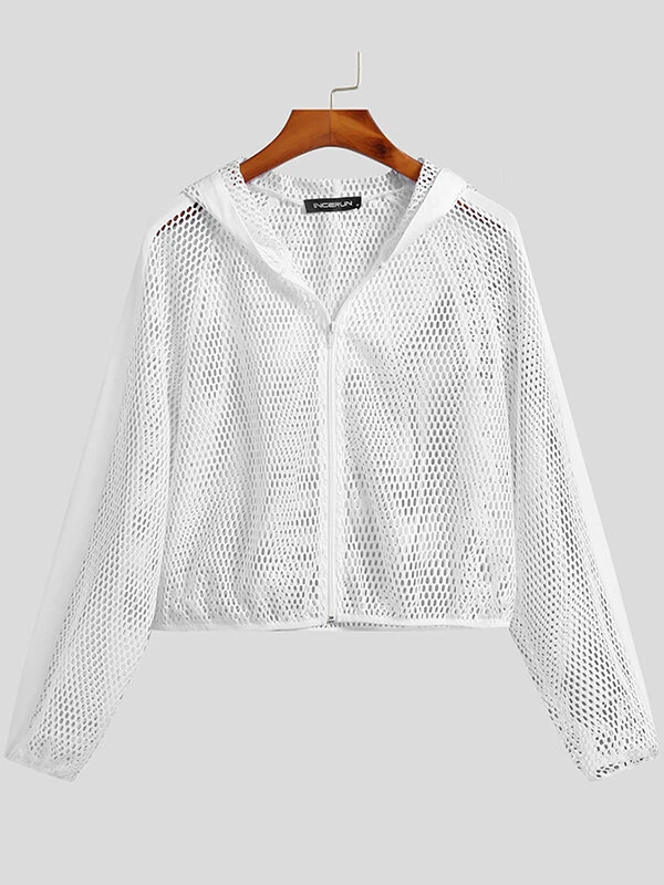 Mens Mesh Hooded Short Long Sleeve Jacket