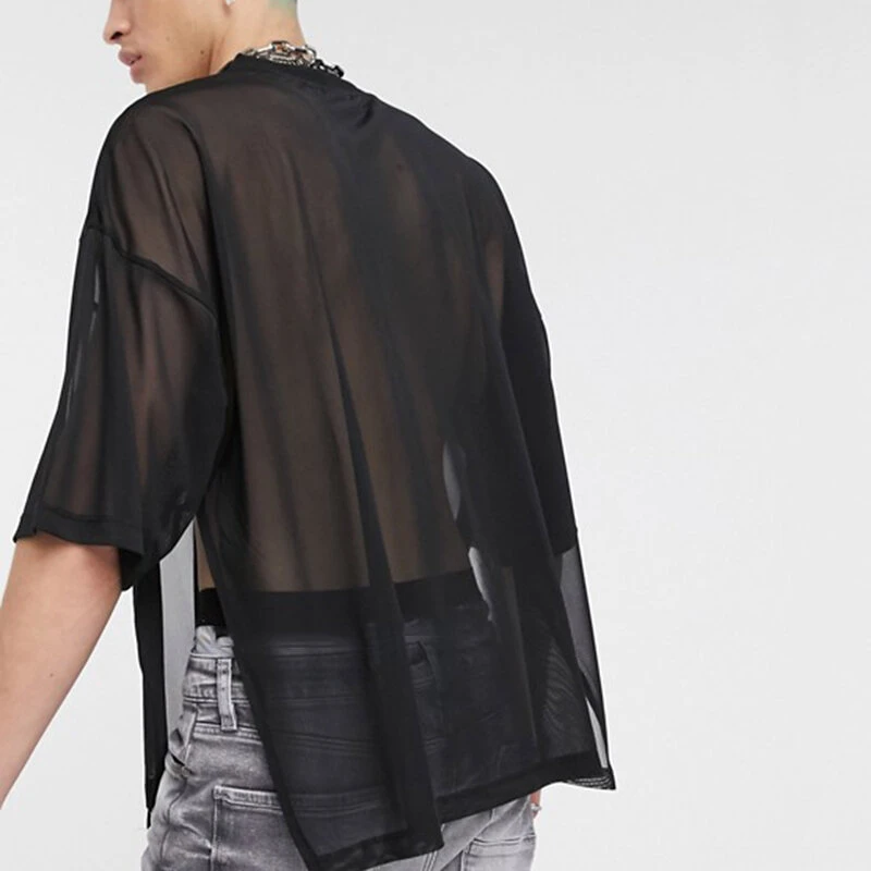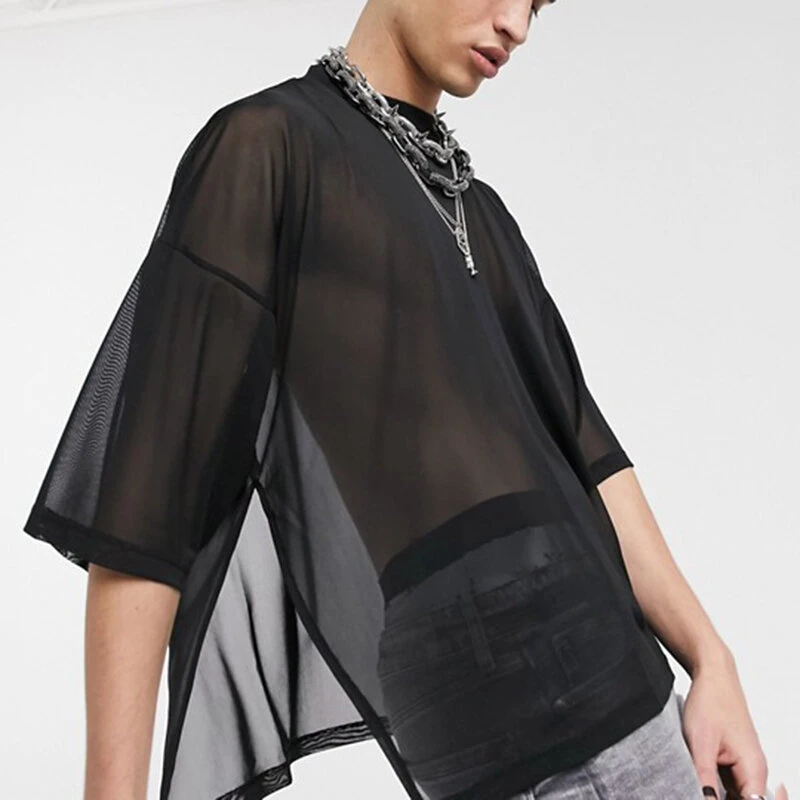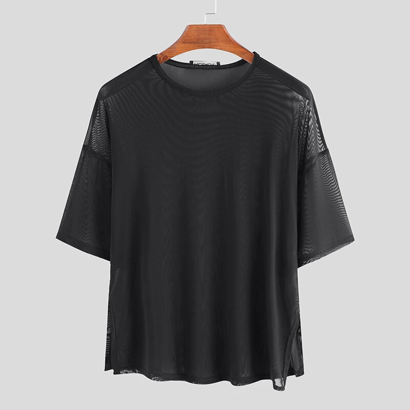 Mens Mesh See Through Loose Short Sleeve T-Shirt