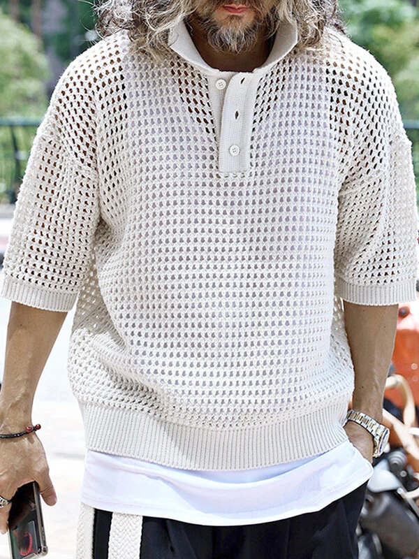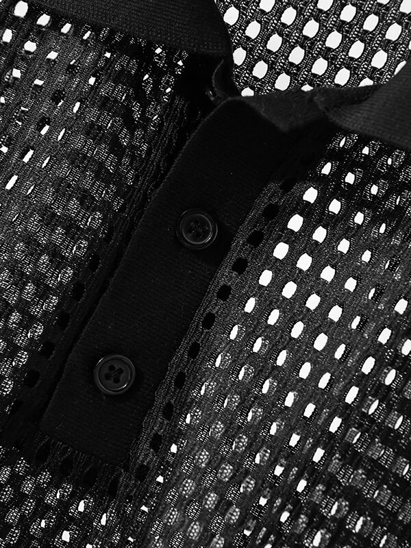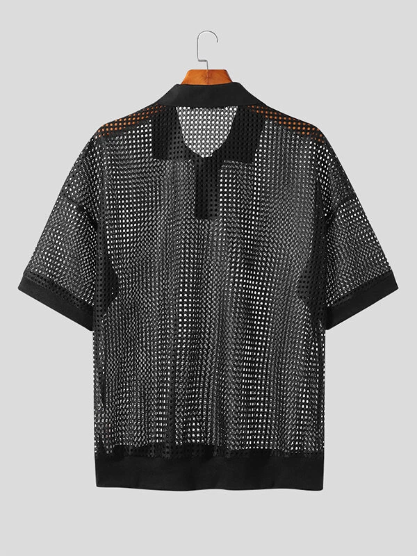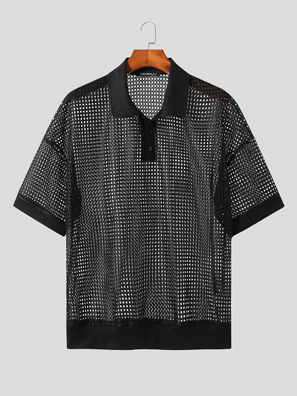 Mens Mesh See Through Solid Short Sleeve Golf Shirt