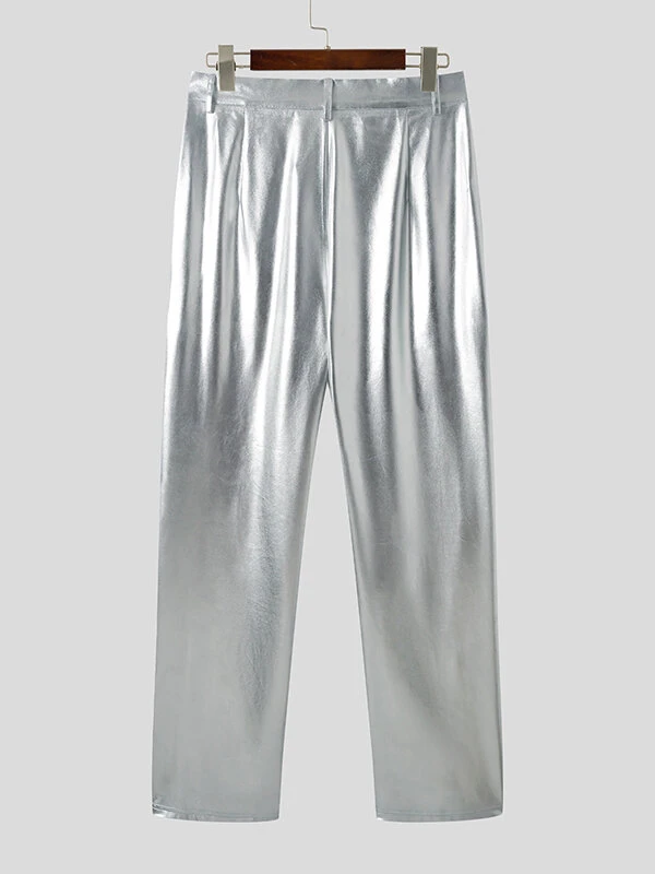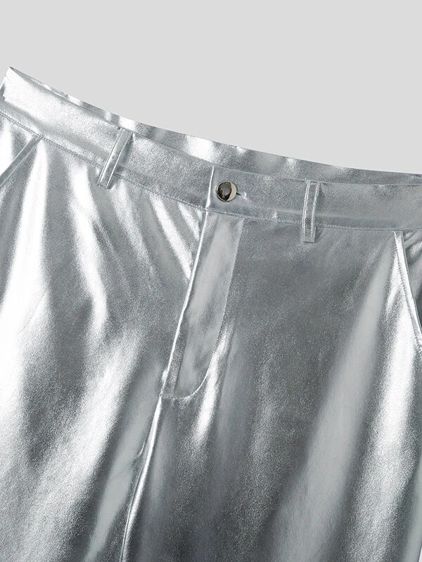 Mens Metallic Metal Button Casual Straight Pants