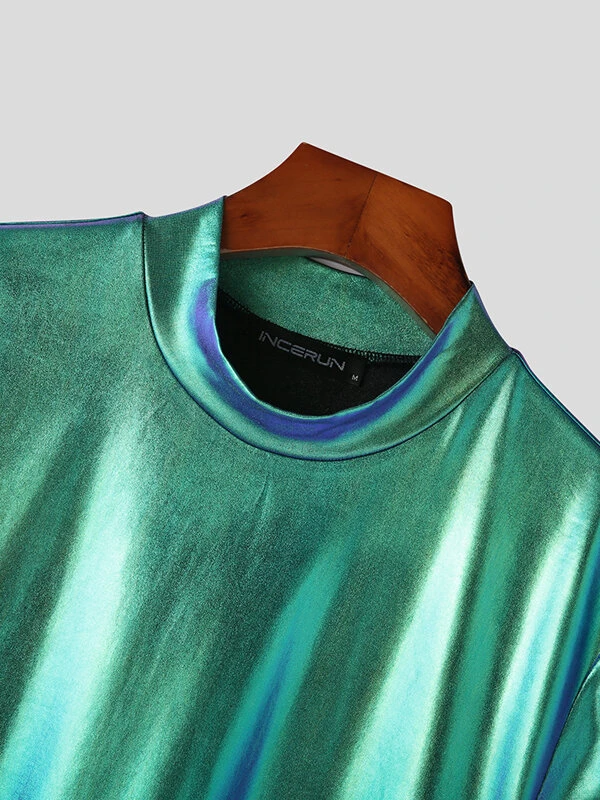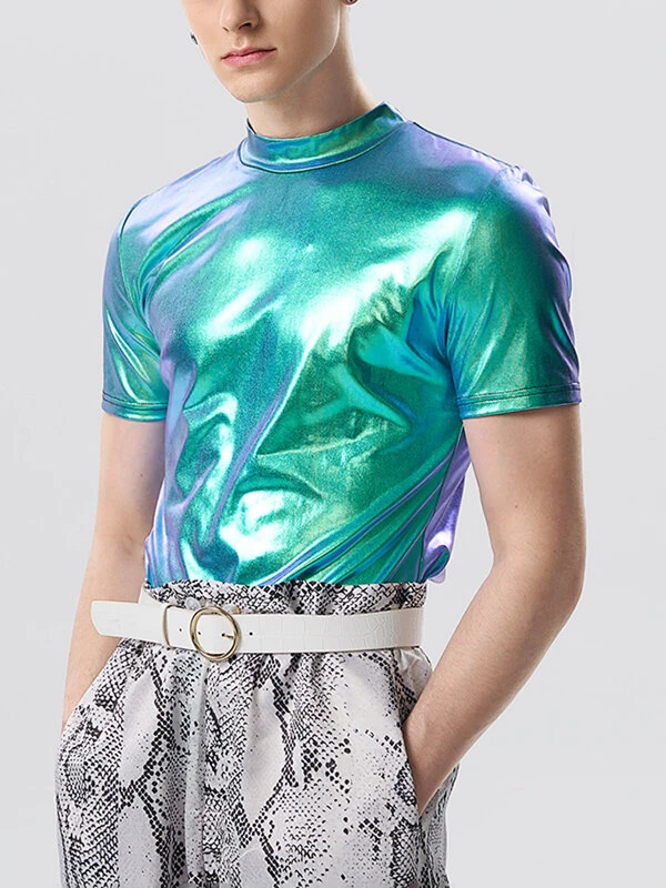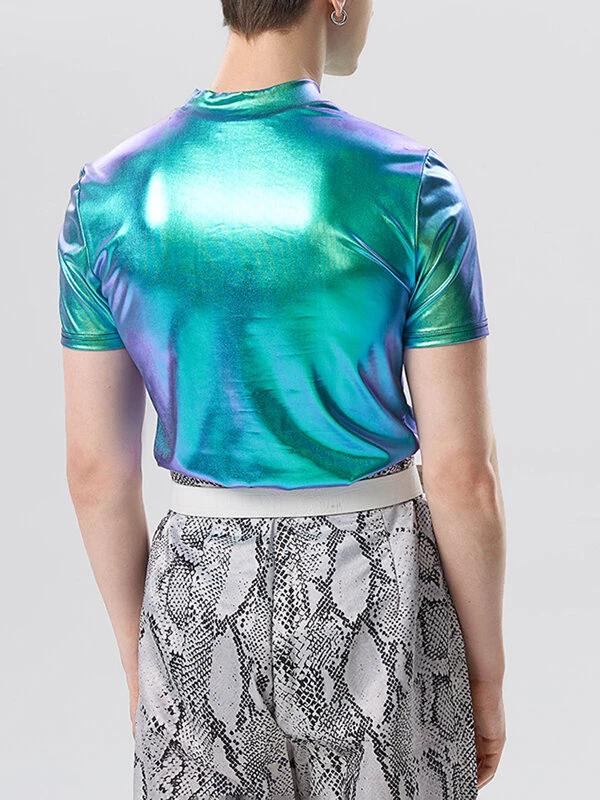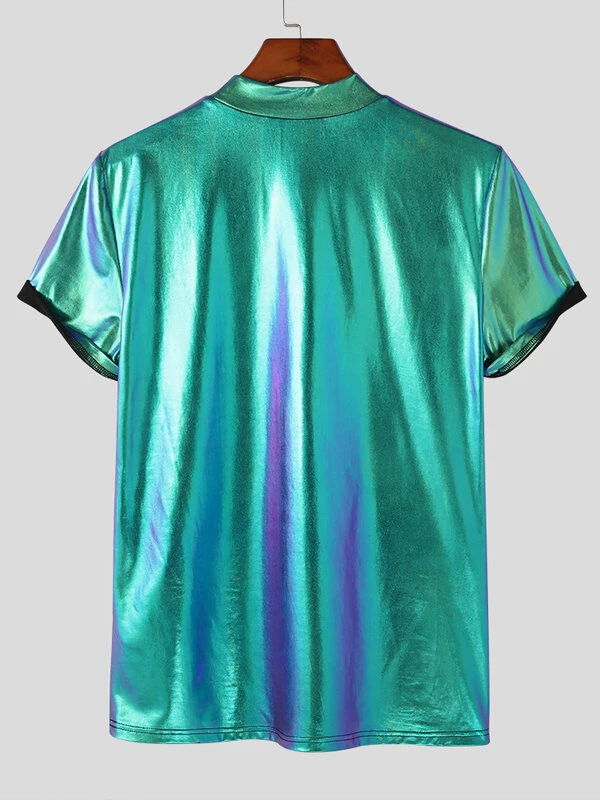 Mens Ombre Metallic Half-Collar Short Sleeve T-Shirt