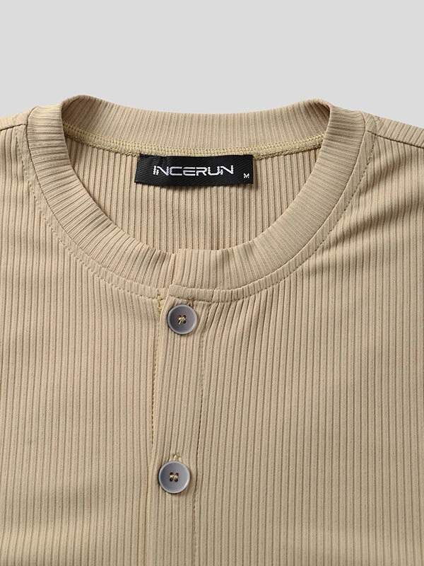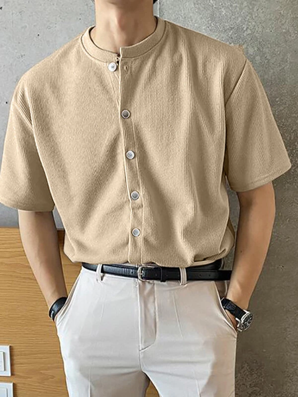 Occasion: Casual Color: Khaki, White Size: S, M, L, XL, 2XL, 3XL, 4XL, 5XL Pattern: Solid Collar: Stand Collar Material: Spandex, Polyester Sleeves Length: Short Sleeve Thickness: Moderate Season: Summer Design Element: Button Package Included:1*Shirt