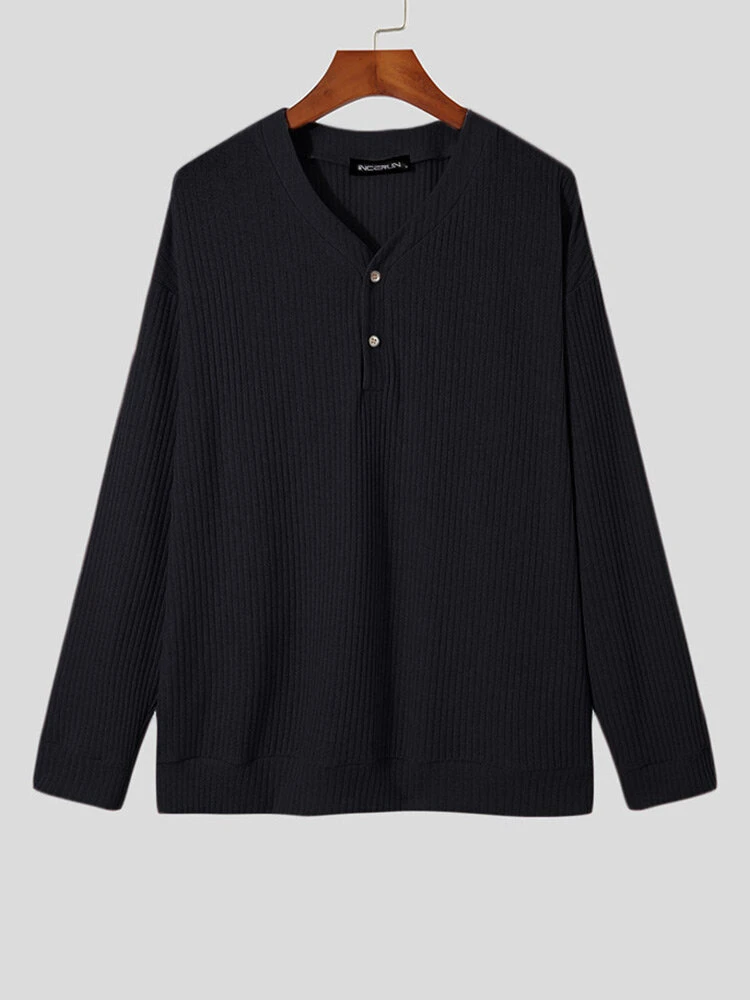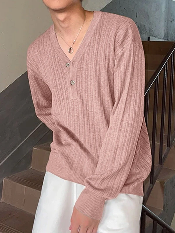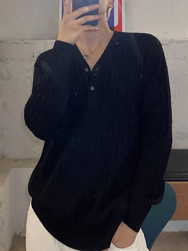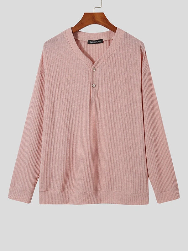 Occasion: Casual Color: Black, Pink, Khaki Size: S, M, L, XL, 2XL, 3XL, 4XL, 5XL Pattern: Solid Collar: V-neck Material: Spandex, Polyester Sleeves Length: Long Sleeve Thickness: Moderate Season: Spring, Autumn Design Element: Button Package Included:1*T-shirt