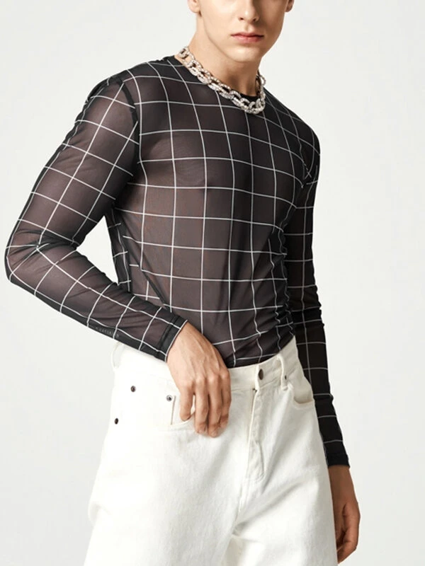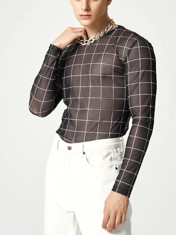 Be the first to review “Mens Plaid Mesh See Through Long Sleeve T-shirt” Cancel reply
