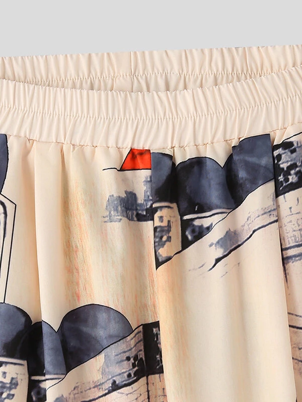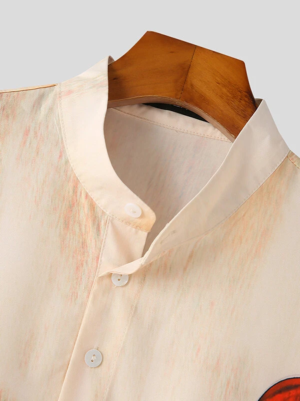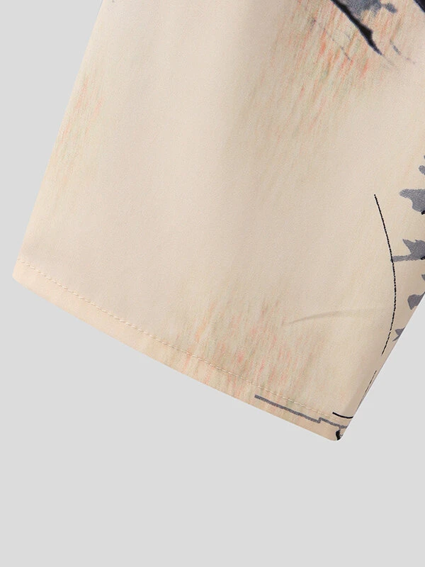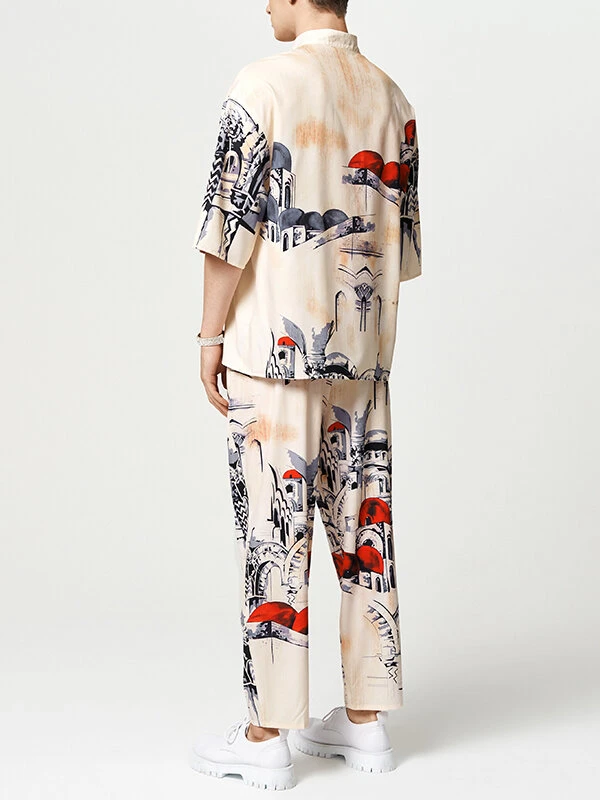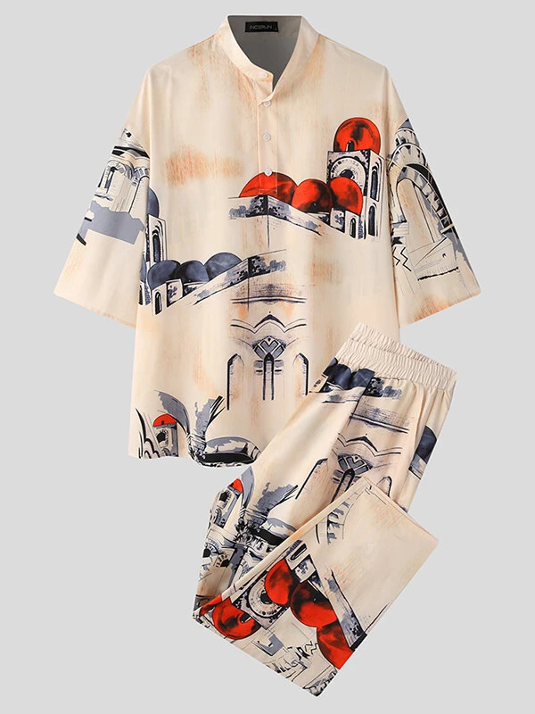 Mens Print Pocket Half Sleeve Two Pieces Suit