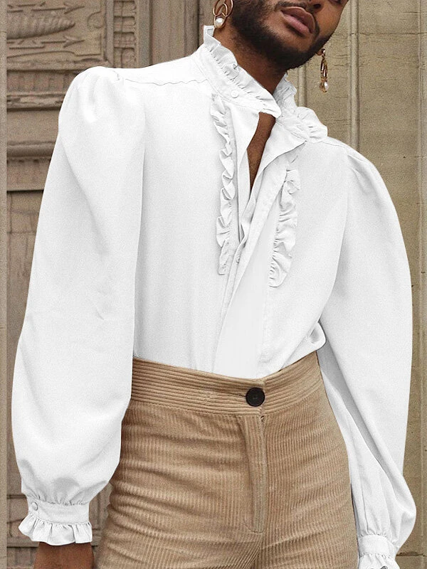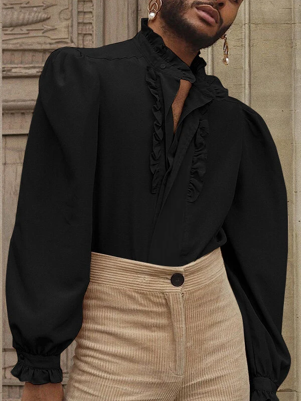 Be the first to review “Mens Puff Sleeve Ruffle Neck Button Shirt” Cancel reply
