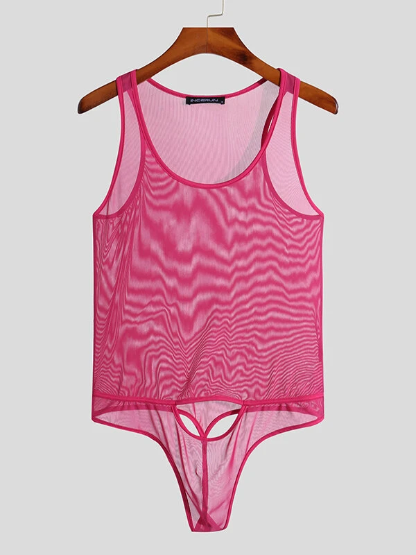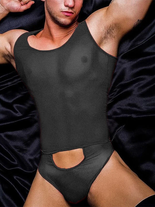 Mens See Through Hollow Elastic Triangle Bodysuit