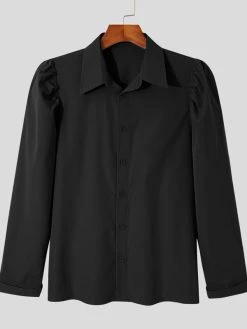 Occasion: Casual Color: Black, White Size: S, M, L, XL, 2XL, 3XL, 4XL, 5XL Pattern: Solid Collar: Lapel Collar Material: Spandex, Polyester Sleeves Length: Long Sleeve Thickness: Moderate Season: Autumn, Spring Design Element: Button Package Included:1*Shirt