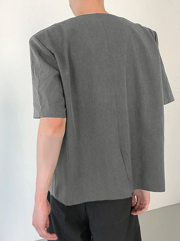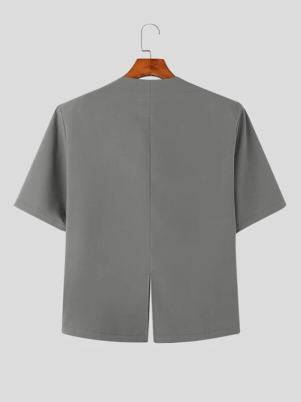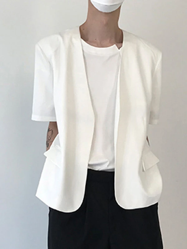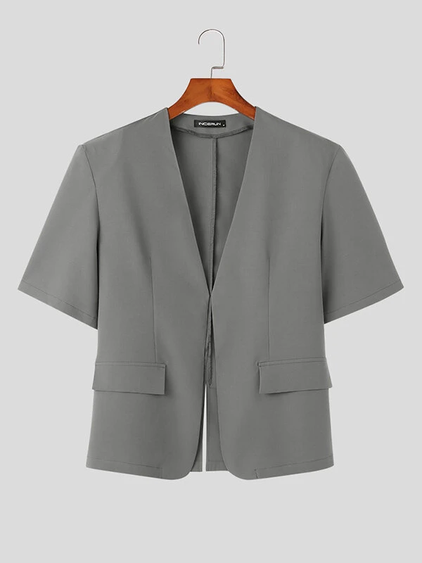 Mens Solid Collarless Short Sleeve Casual Blazer