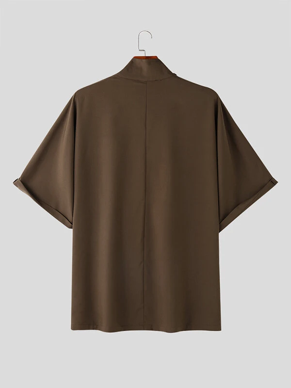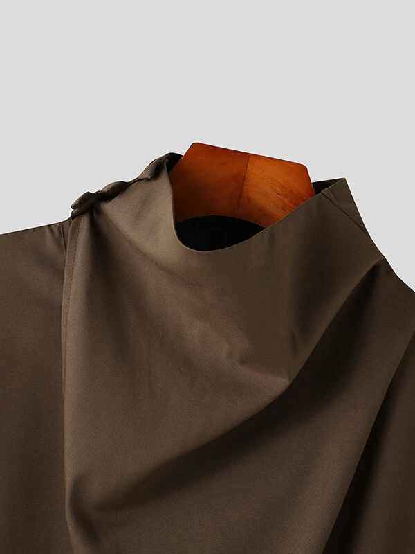 Mens Solid Cowl Neck Button Design Half Sleeve T-Shirt