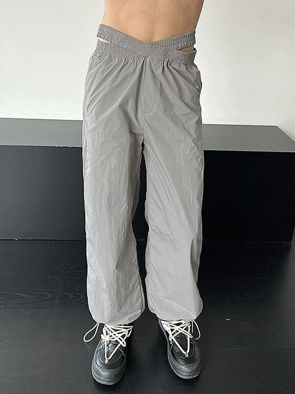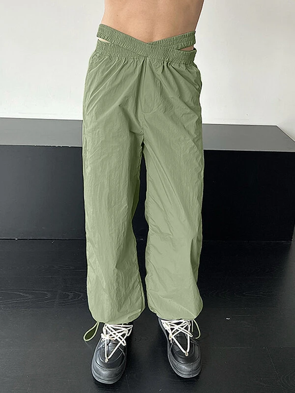 Mens Solid Cross Elastic Waist Drawcord Cuff Cargo Pants