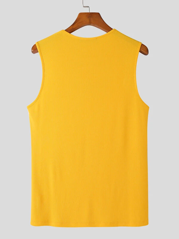 Occasion: Casual Color: Blue, Black, Yellow Size: S, M, L, XL, 2XL, 3XL, 4XL, 5XL Pattern: Solid Collar: Crew Neck Material: Spandex, Polyester Sleeves Length: Sleeveless Thickness: Moderate Season: Summer Package Included:1*Tank Top