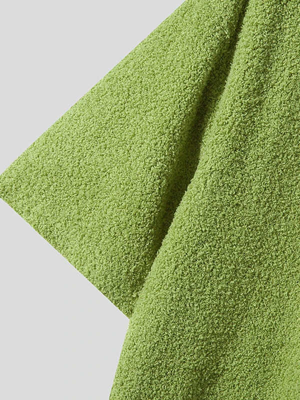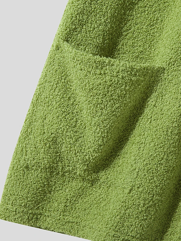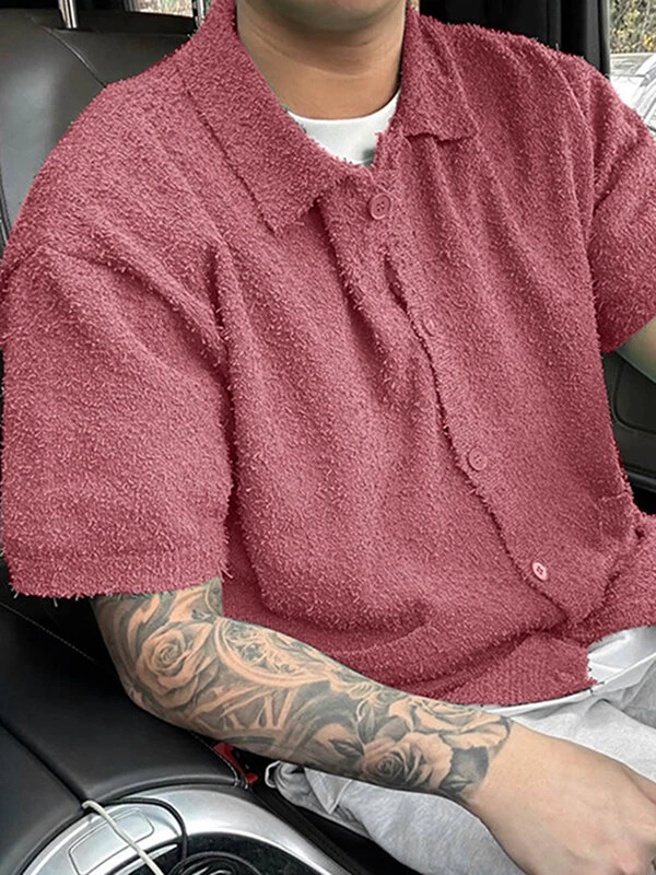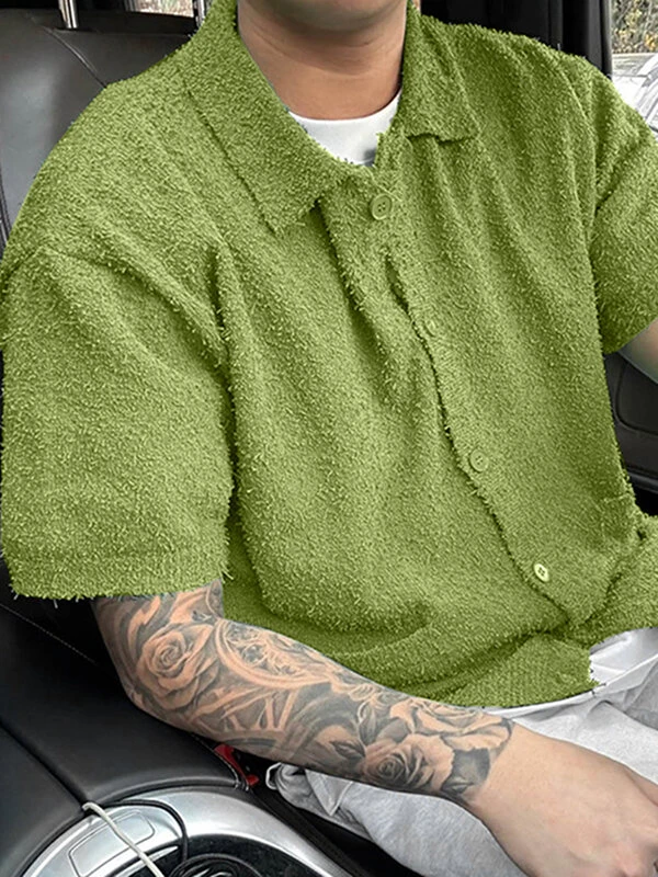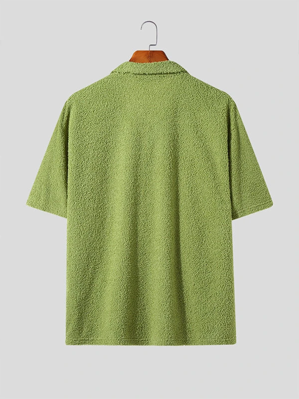 Mens Solid Fleece Double Pocket Casual Short Sleeve Shirt