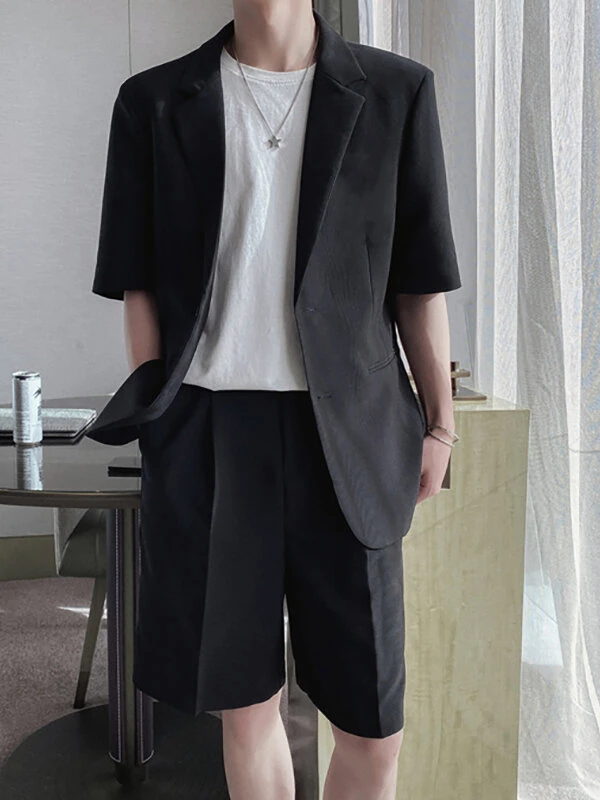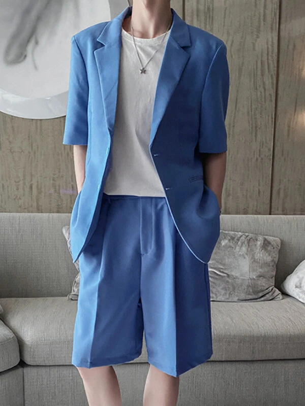Mens Solid Half Sleeve Blazer Casual Two Pieces Outfits
