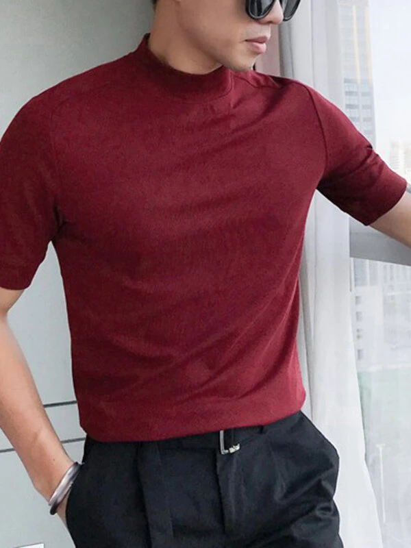 Be the first to review “Mens Solid High Neck Knit Casual Short Sleeve T-Shirt” Cancel reply