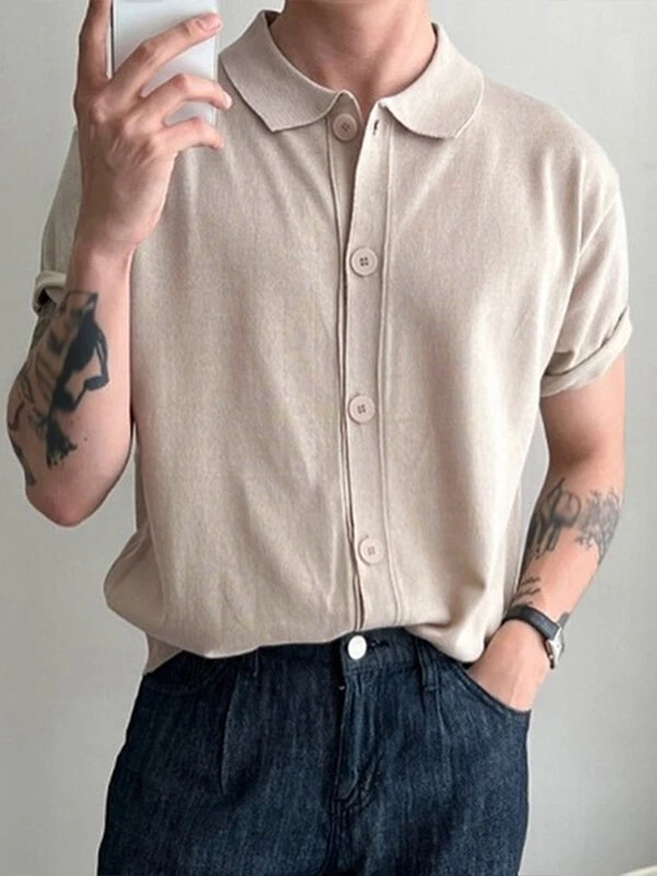 Occasion: Casual Color: Gray, Khaki, White, Black Size: S, M, L, XL, 2XL, 3XL, 4XL, 5XL Pattern: Solid Collar: Lapel Collar Material: Spandex, Polyester, Viscose Sleeves Length: Short Sleeve Thickness: Moderate Season: Summer Design Element: Button Fit Type: Regular Package included:1*ShirtPlease Note:Please see the Size Reference to find the correct size.