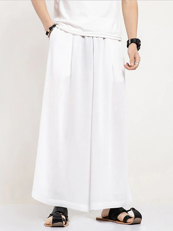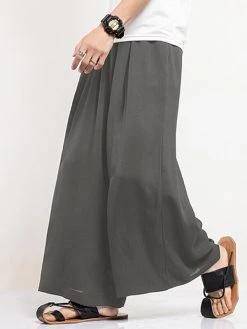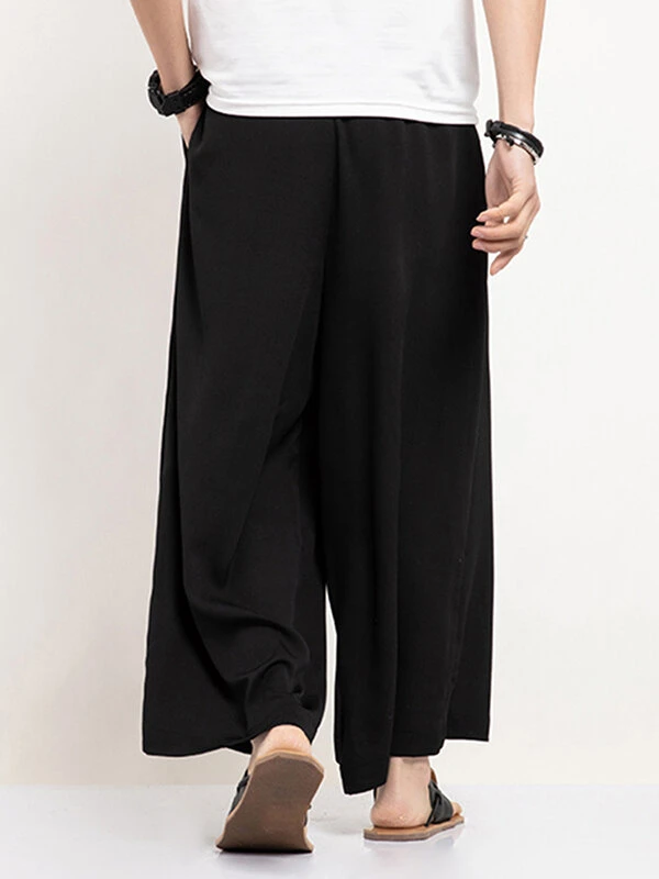 Mens Solid Loose Wide Leg Warrior Pants With Pocket