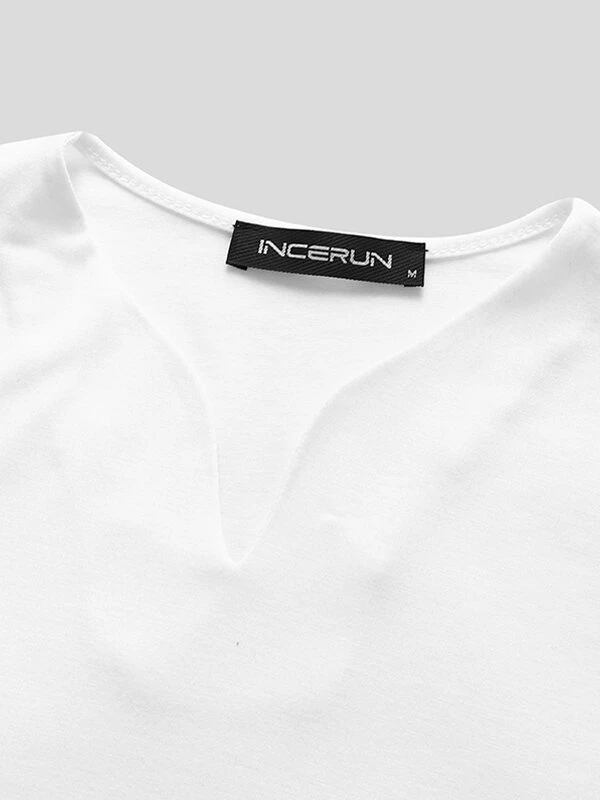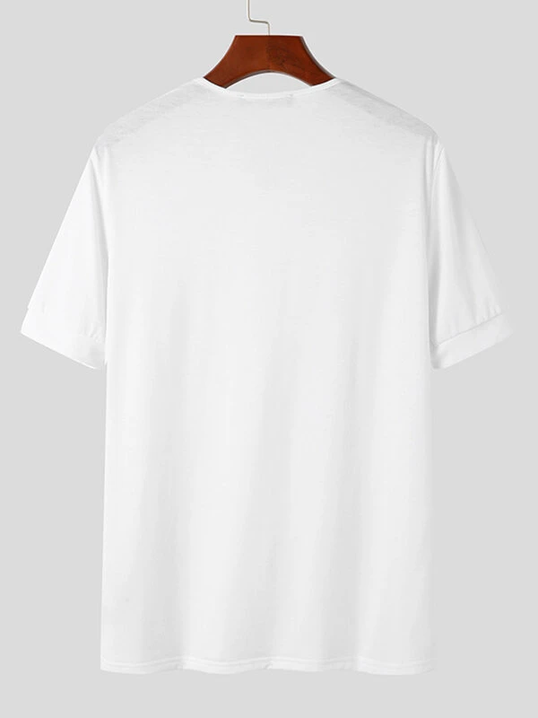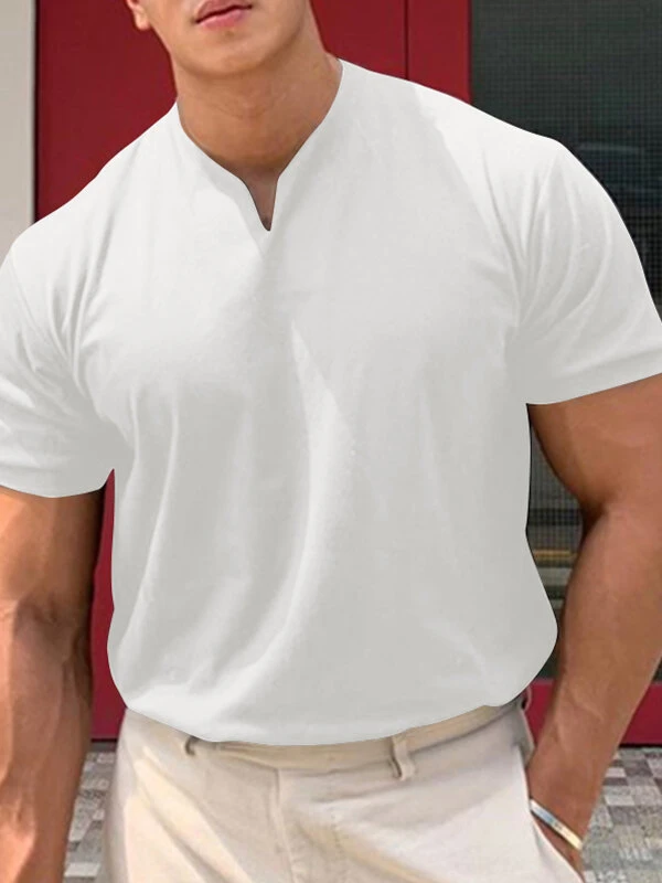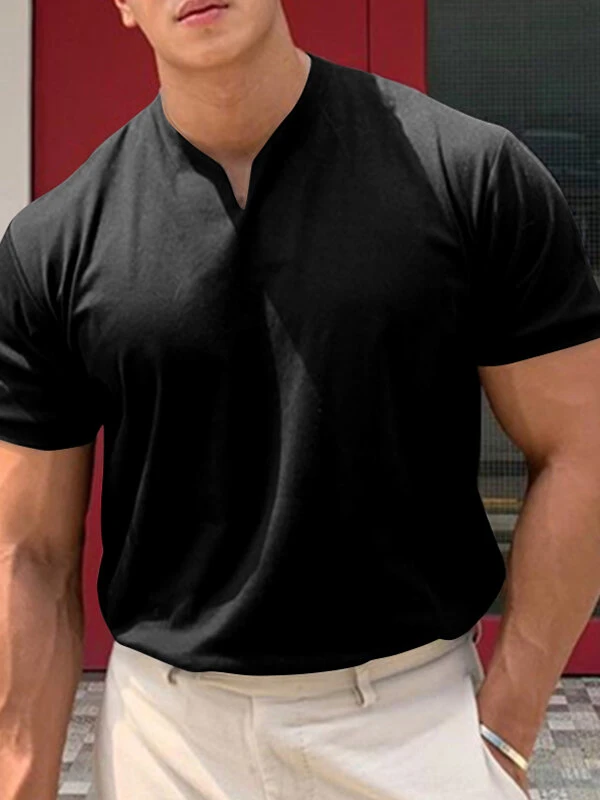 Mens Solid Notched Neck Casual Short Sleeve T-Shirt