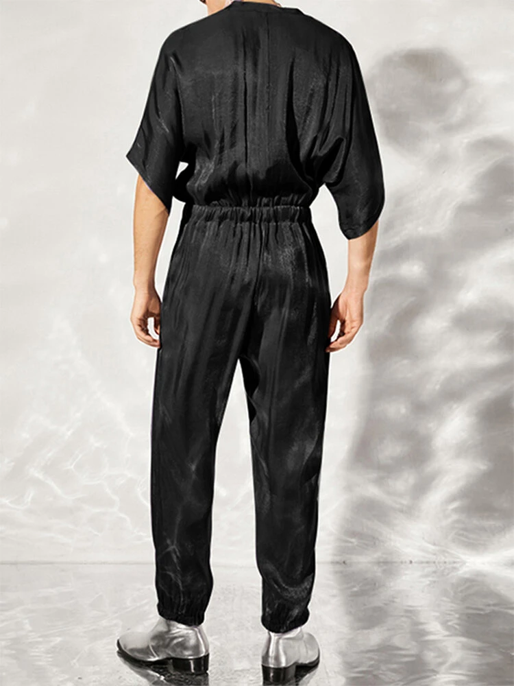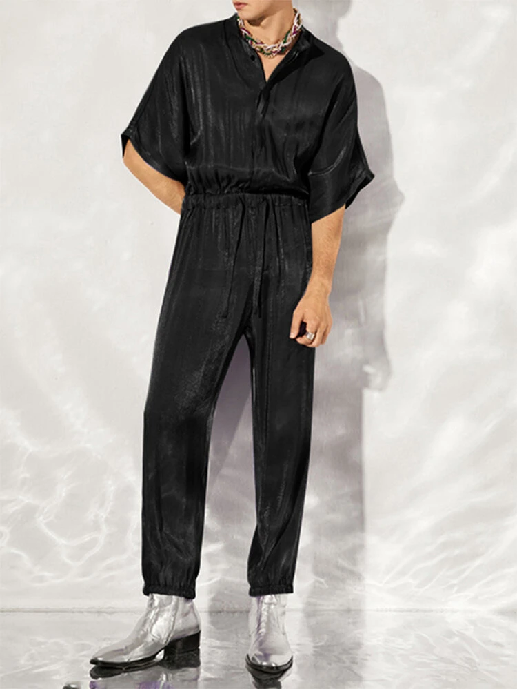 Be the first to review “Mens Solid Shiny Drawstring Waist Zipper Jumpsuit” Cancel reply