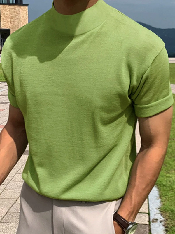 Occasion: Casual Color: Brown, Green, Black, Blue Size: S, M, L, XL, 2XL, 3XL, 4XL, 5XL Pattern: Solid Collar: Half-collar Material: Rayon, Spandex Sleeves Length: Short Sleeve Thickness: Moderate Season: Summer Package Included:1*T-shirt