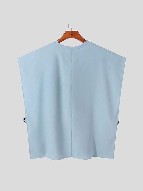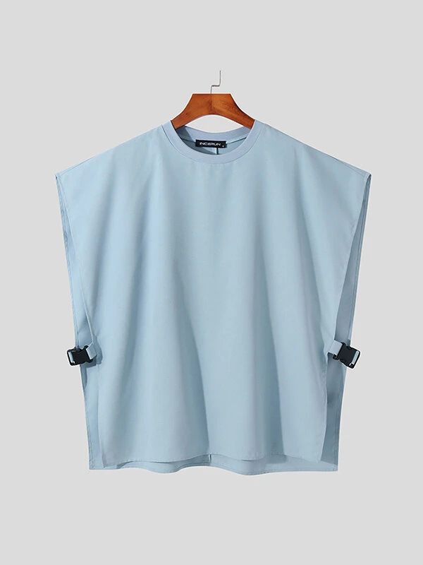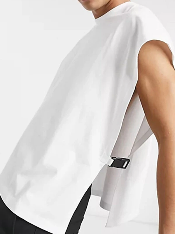 Mens Solid Side Push Buckle Design Sleeveless Tank
