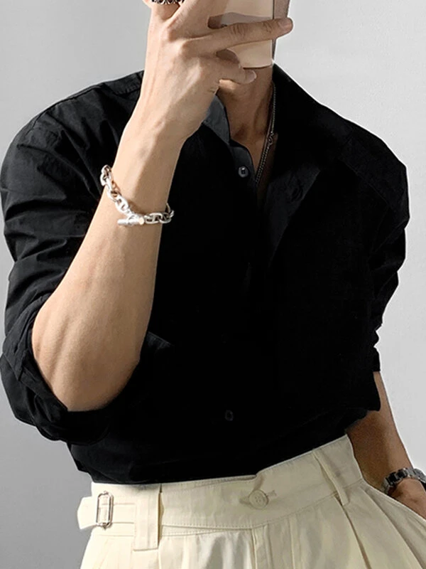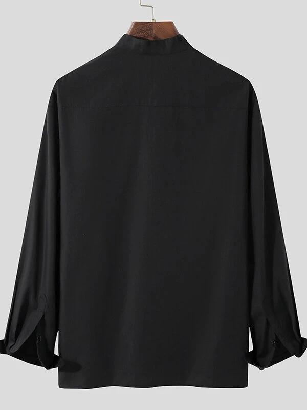 Occasion: Casual Color: Black, White, Brown Size: S, M, L, XL, 2XL, 3XL, 4XL, 5XL Pattern: Solid Collar: Stand Collar Material: Cotton, Polyester Sleeves Length: Long Sleeve Thickness: Moderate Season: Autumn, Spring Design Element: Pocket, Button Package Included:1*Shirt