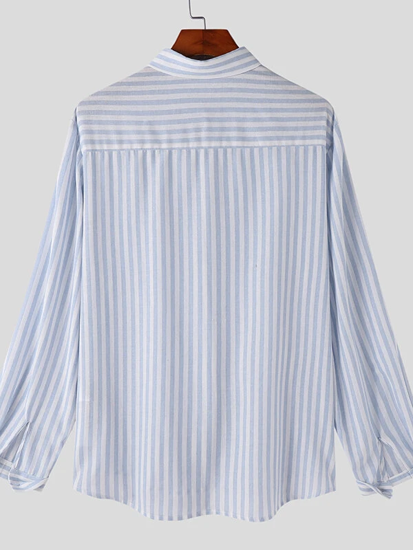 Mens Striped Button Down Collar Long Sleeve Shirt